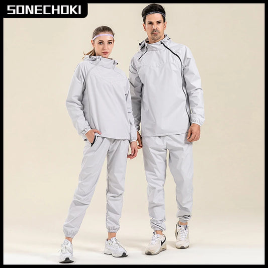 Profession Sauna Suit Unisex Gym Clothing Set Double Zipper Hooded Running Fitness Exercise Sportswear Weight Loss Sweating Suit