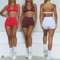1/2PCS Deep V Bra Gym Halter Yoga Set Women Gym Sportswear Outfits Workout Fitness Shorts For Female Workout Active Wear Suit