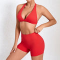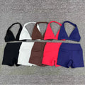 1/2PCS Deep V Bra Gym Halter Yoga Set Women Gym Sportswear Outfits Workout Fitness Shorts For Female Workout Active Wear Suit