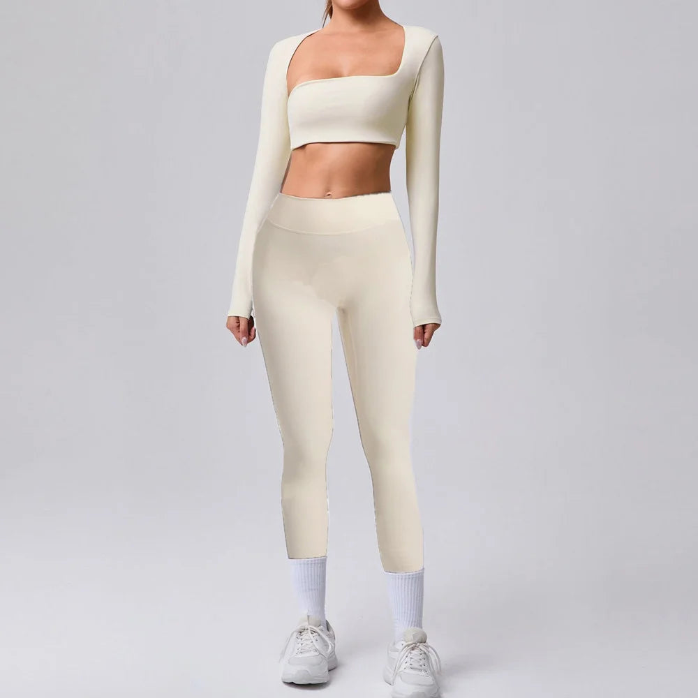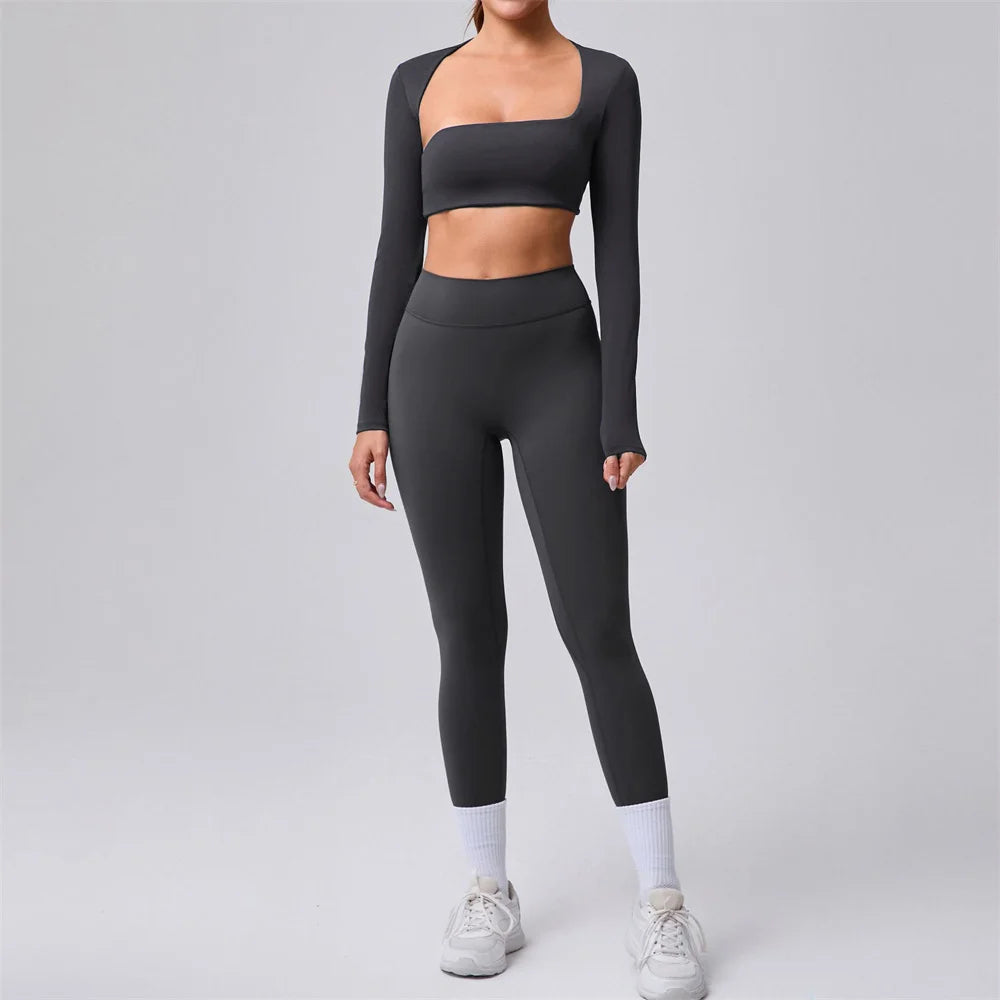 1/2PCS Yoga Set Sportswear Workout Clothes Athletic Wear Gym Legging Fitness Bra Crop Top Long Sleeve Sport Suit Women Tracksuit