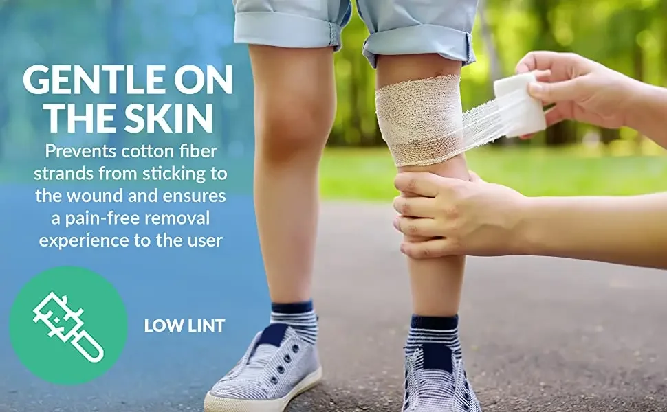 3. EASY APPLICATION AND REMOVAL - Our Stretch Gauze Bandages are low lint, economical, highly absorbent, and latex-free. Thus, they provide optimum comfort, fast and effective healing process, and pain-free dressing application and removal. Note: Do not apply directly to an open wound.