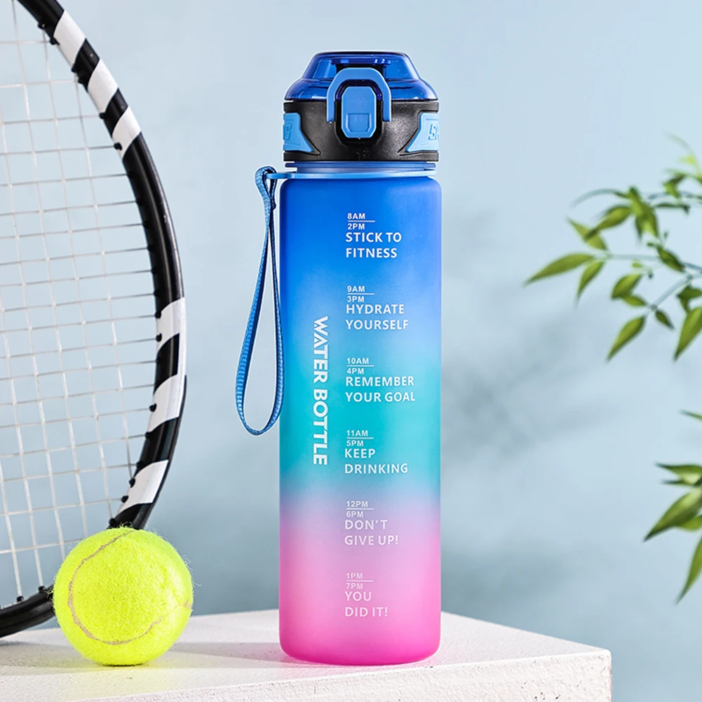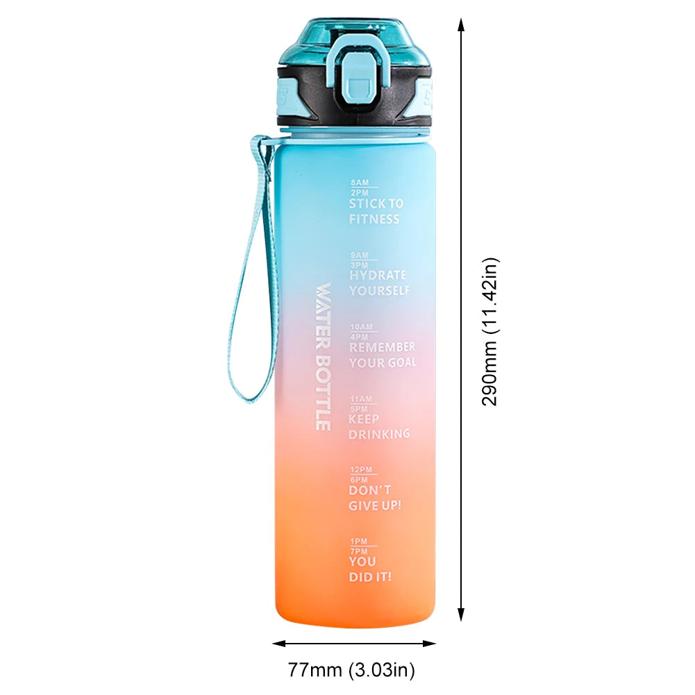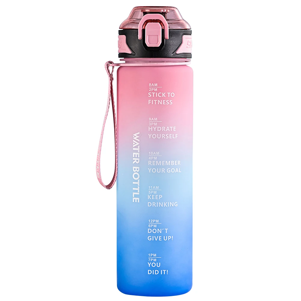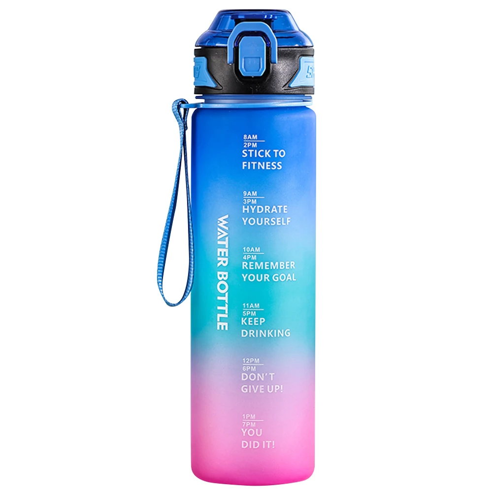 1L Water Bottle with Time Marker Gradient Matte Sports Water Bottle Drinking Water Bottle for Fitness Gym Camping Outdoor Sports