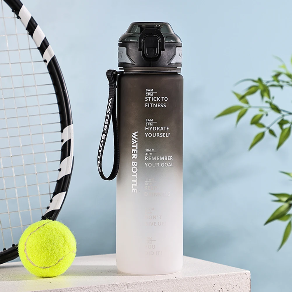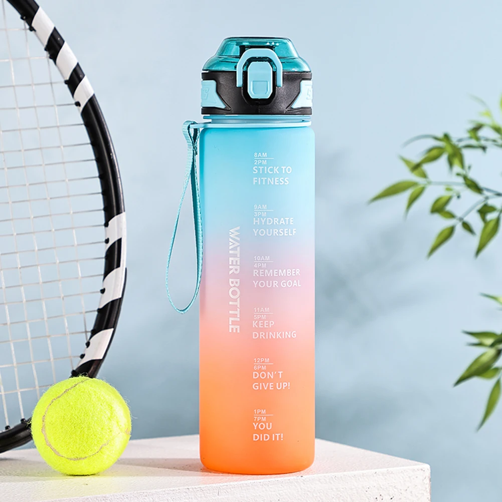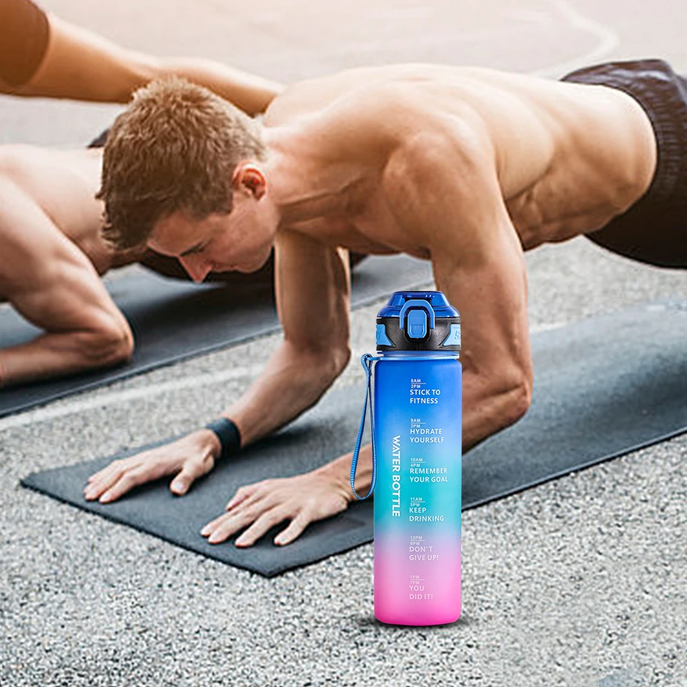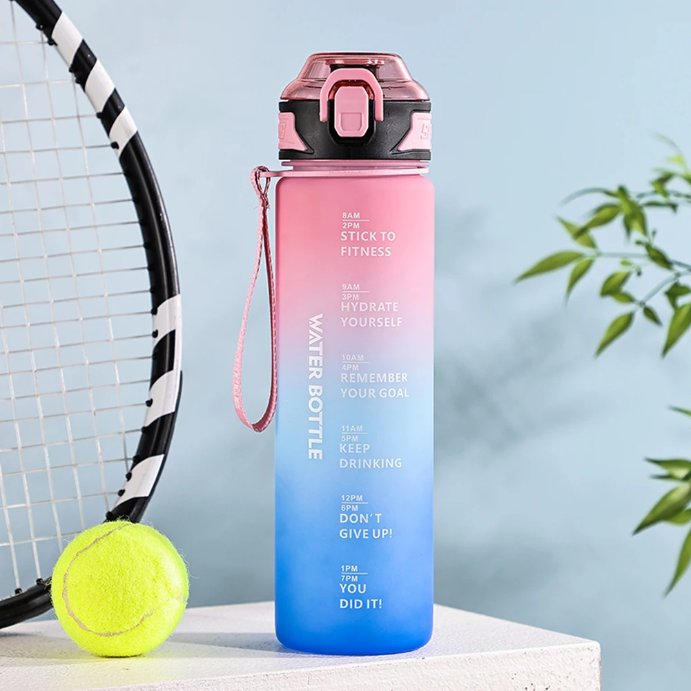 1L Water Bottle with Time Marker Gradient Matte Sports Water Bottle Drinking Water Bottle for Fitness Gym Camping Outdoor Sports