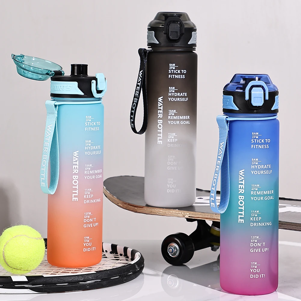 1 Liter Water Bottle Motivational Sport Water Bottle Leakproof Drinking Bottles Outdoor Travel Gym Fitness Jugs with Time Marker