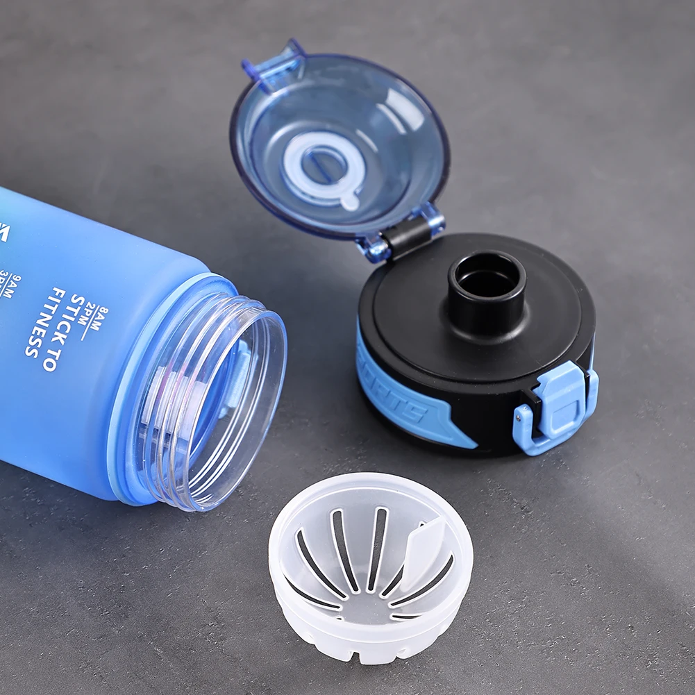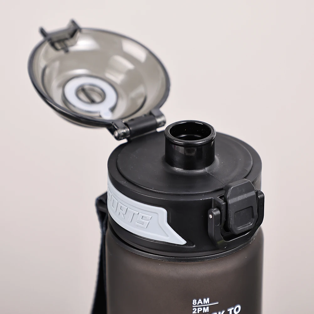 3.Convenient One-Click Flip Design: The motivational water bottle is equipped with a user-friendly one-click flip mechanism. With just a light press, the lid pops open, allowing you to drink water effortlessly and conveniently. This design saves time and effort, especially when you're on the move.