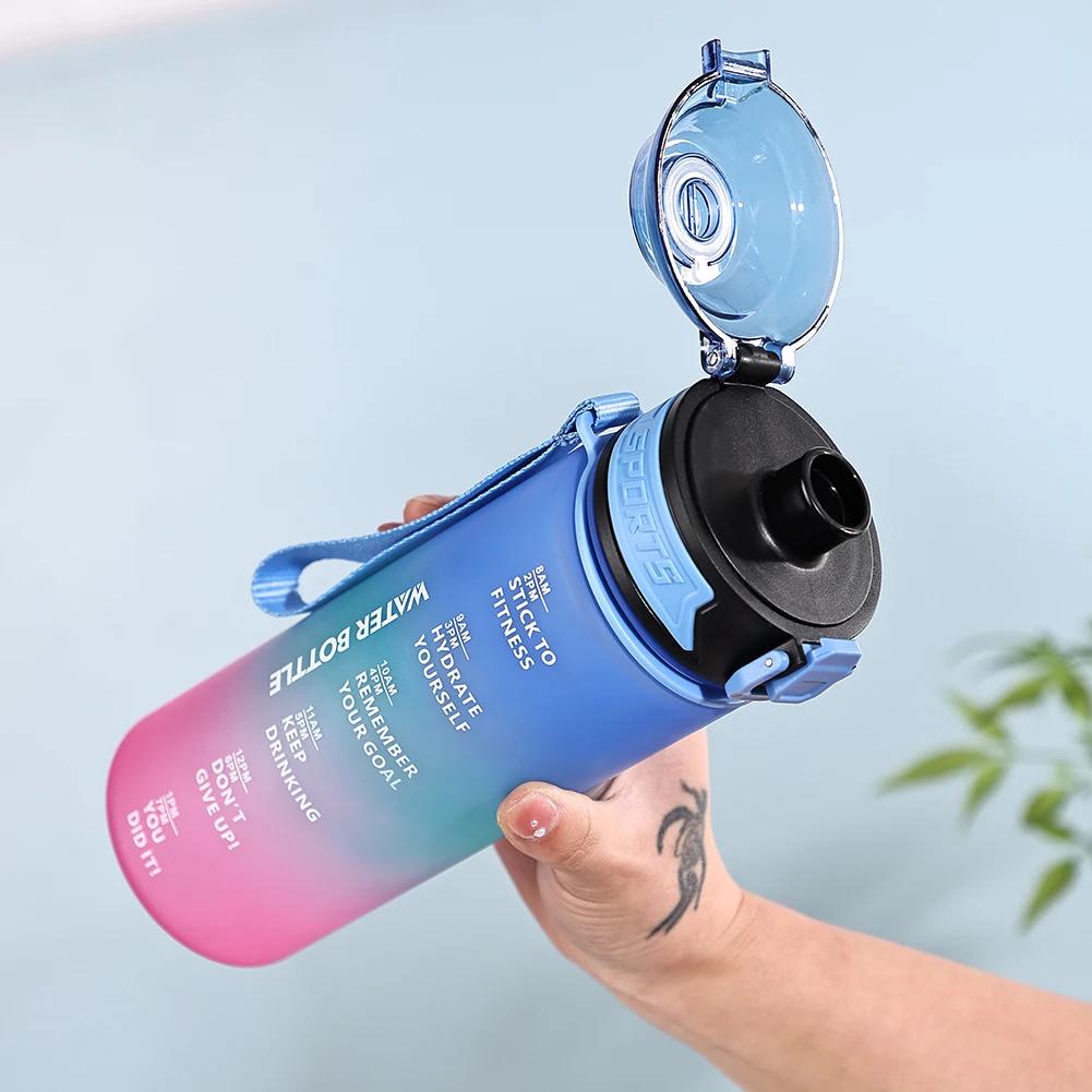 1.Inspirational Motto Markings: The water bottle features motivational slogans imprinted on its surface, serving as a constant reminder to stay hydrated and make drinking water a fun and challenging daily goal. This unique design element adds an extra dose of inspiration to your hydration routine.