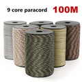 100/50M 550 Military Standard 9-Core Paracord Rope 4mm Outdoor Parachute Cord Survival Umbrella Tent Lanyard Strap Clothesline