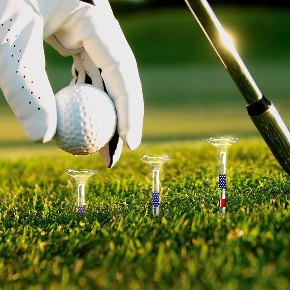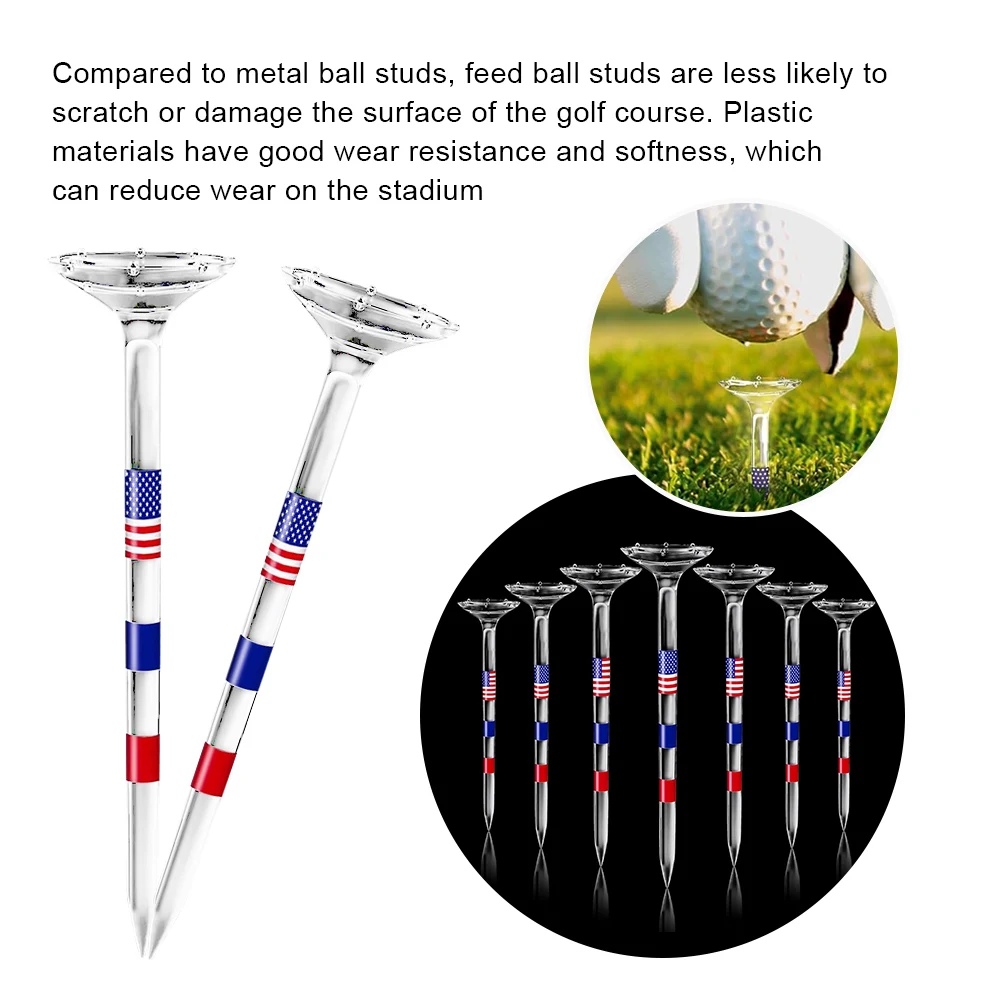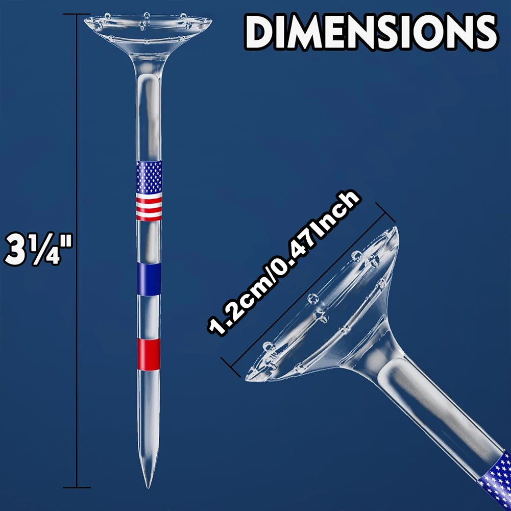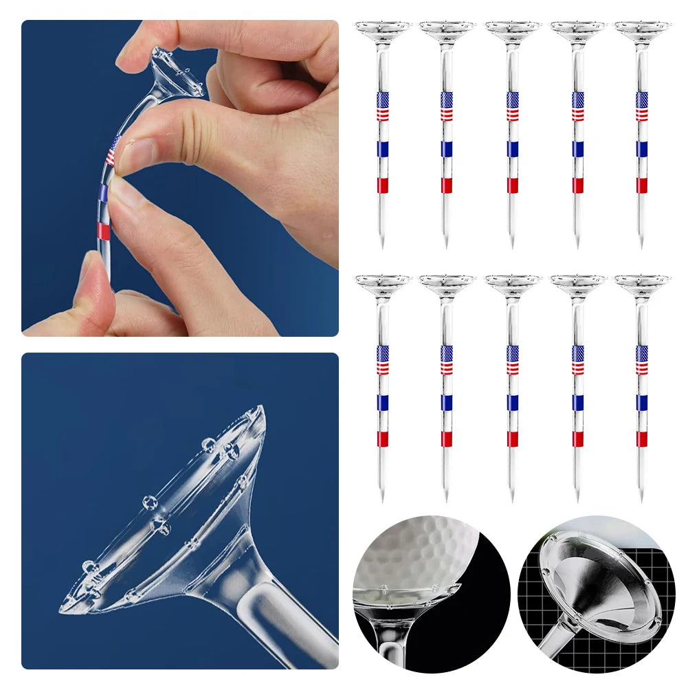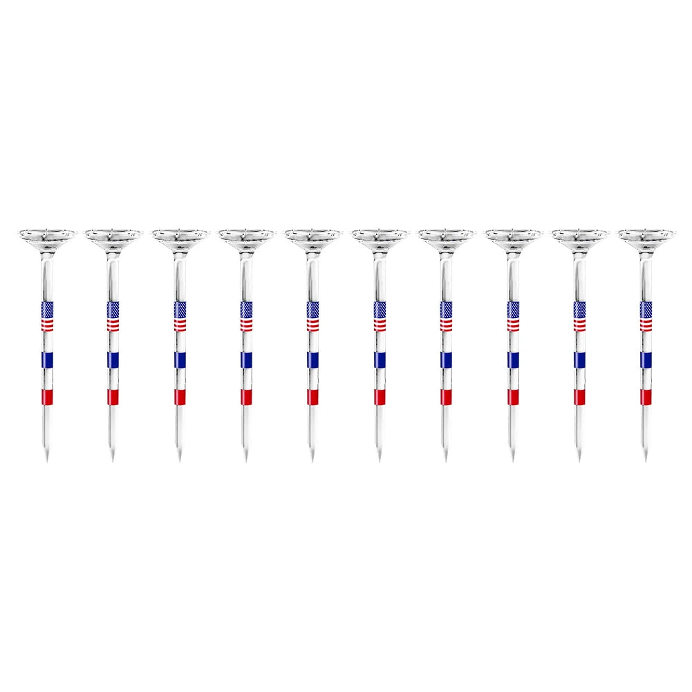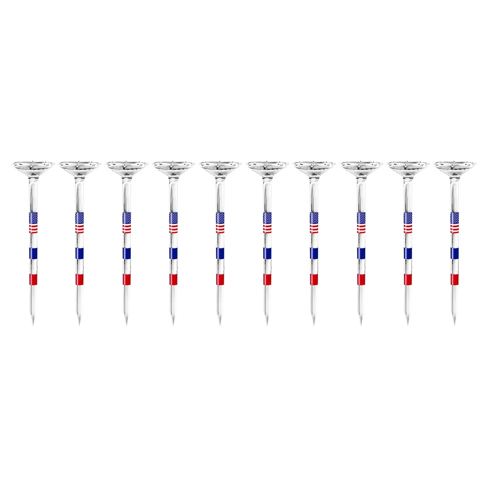 10Pcs Long Golf Tees Bulk Unbreakable 3-1/4 Inch Transparent USA American Flag Reduces Friction and Side Spin Golf Accessories