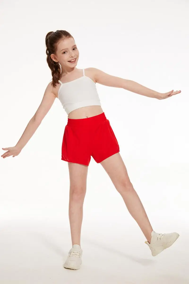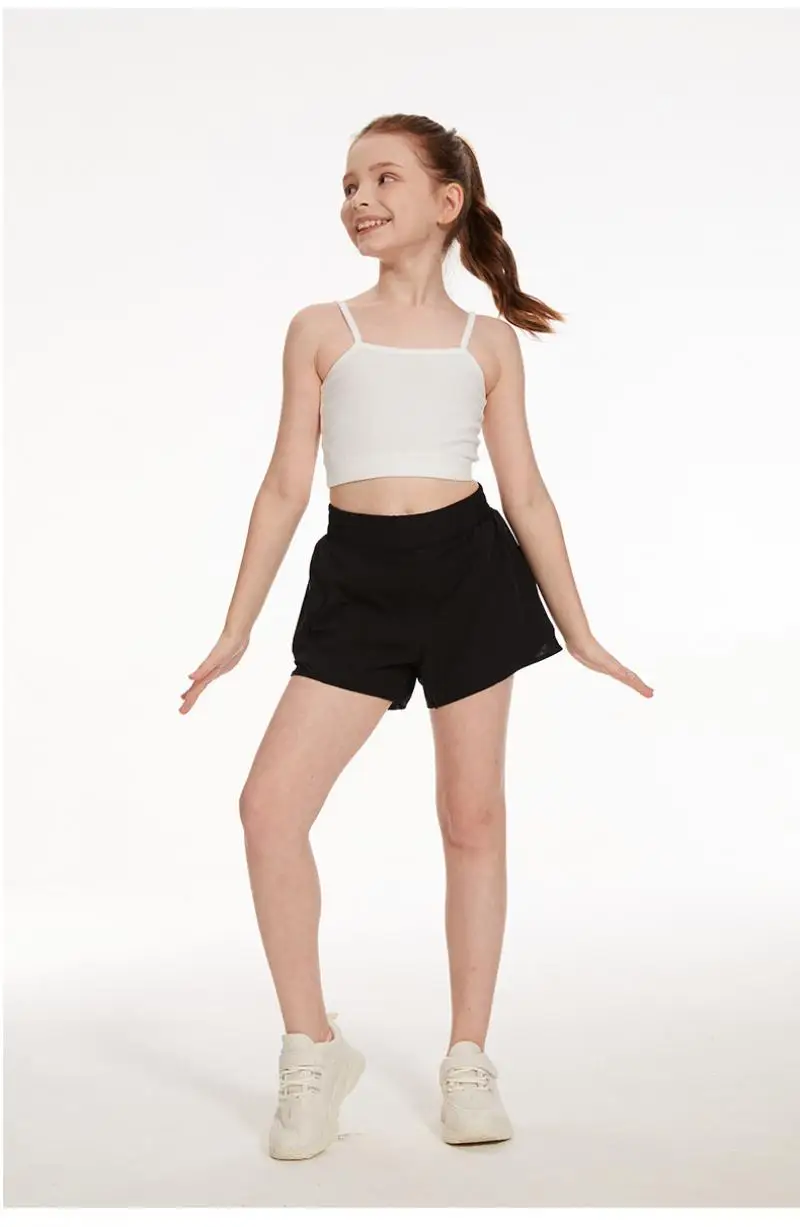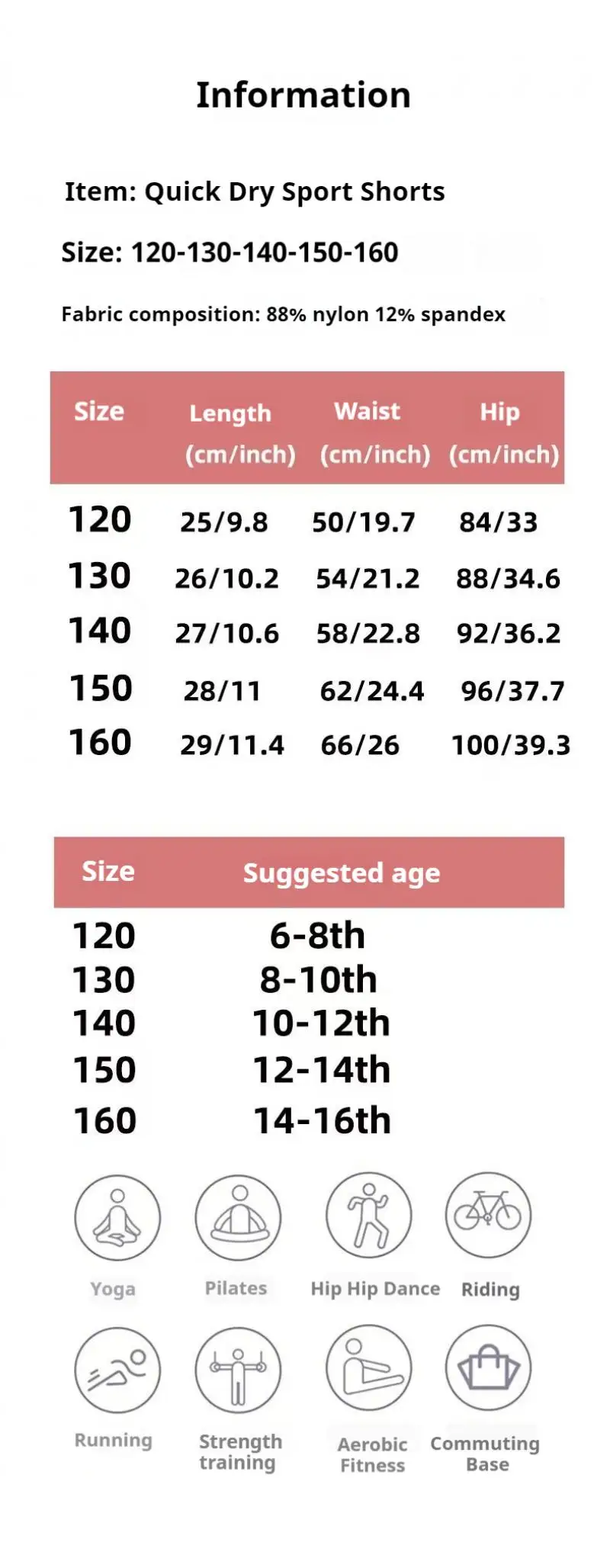 (120-160CM)Kids Quick Dry Sport Shorts Loose Fit Girls Yoga Running Fitness Workout Dancing Exercise Training Short Pants