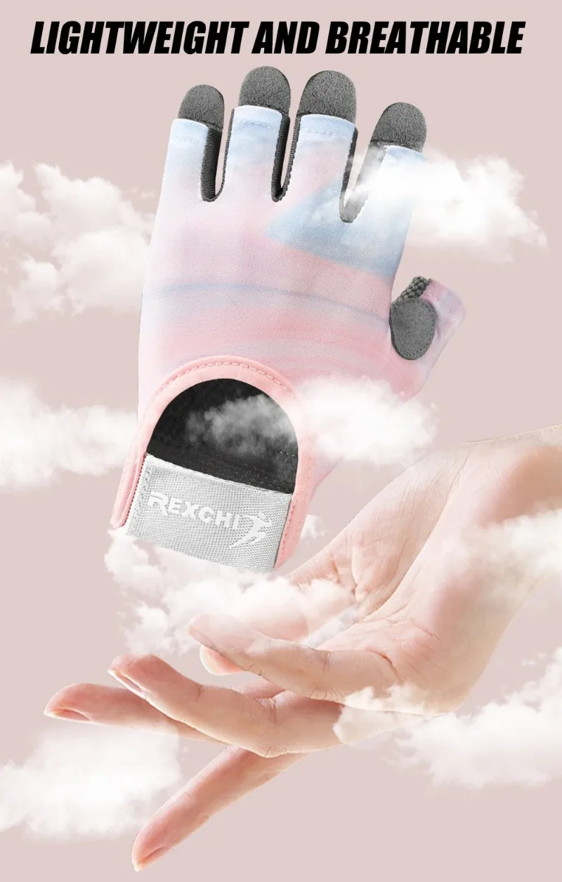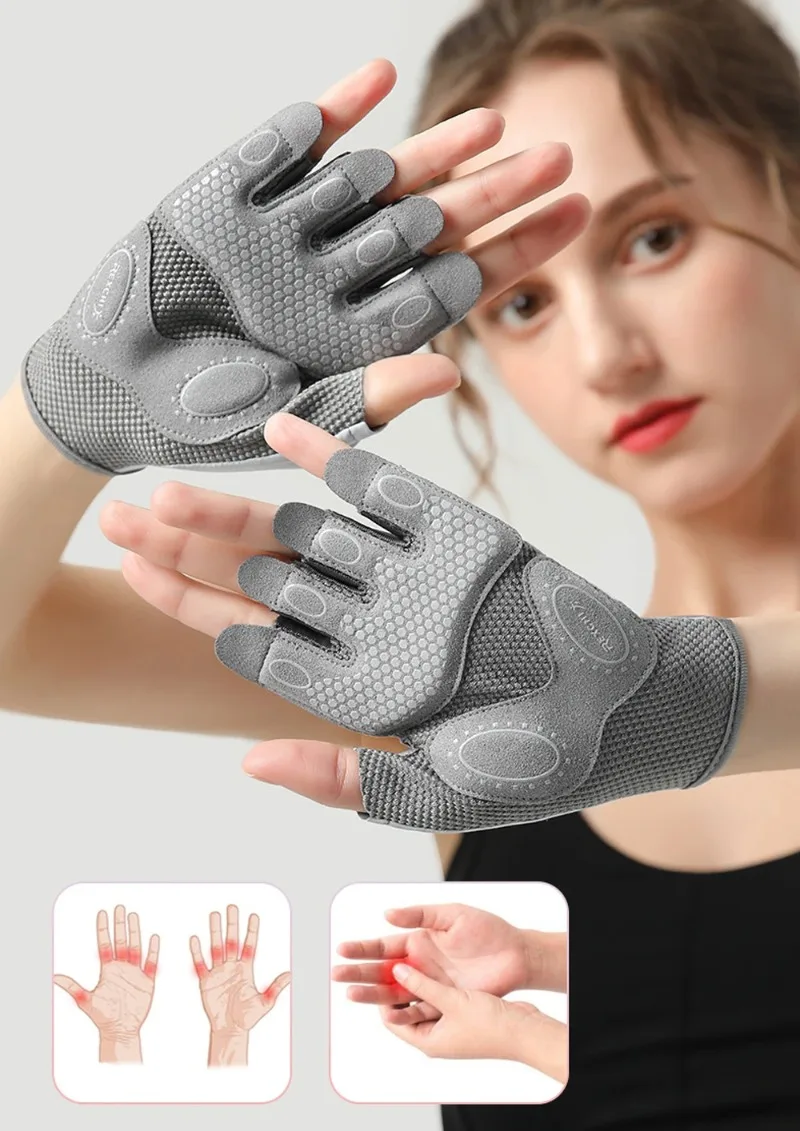 1Pair Sports Gloves Women Yoga Fitness Exercise Anti-slip Shock Absorption Fishing Cycling Breathable Half Finger Gloves Workout