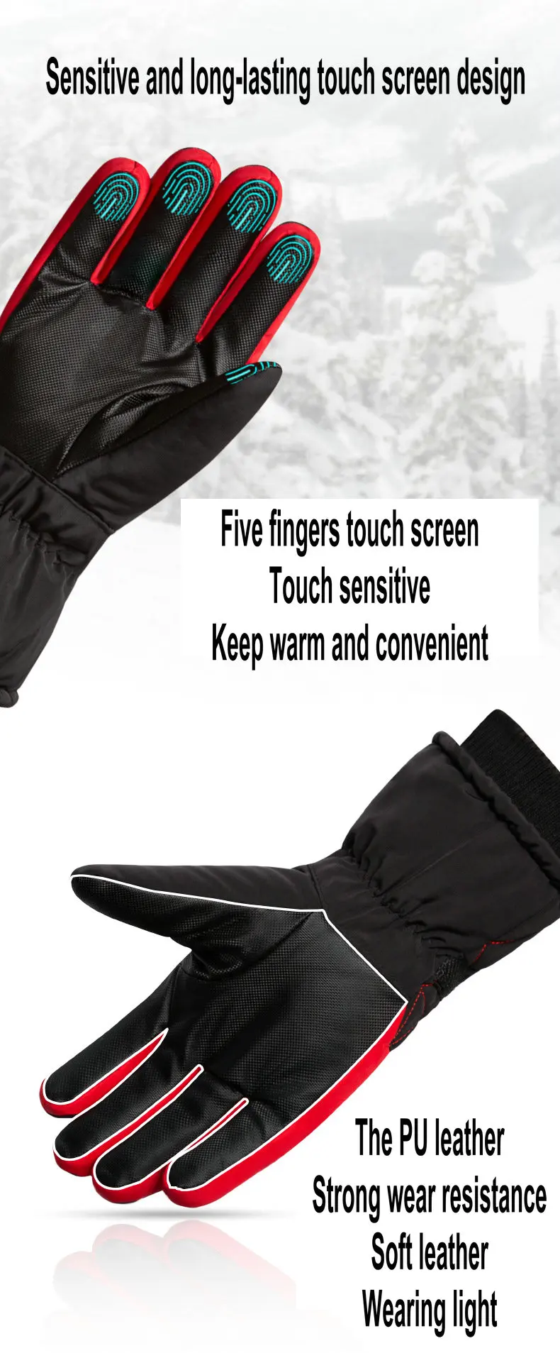 1Pair Winter Ski Gloves Touch Sensitive Screen Mountain Skiing Snowmobile Warm Thicken Waterproof Snowboard Women Men Ridding