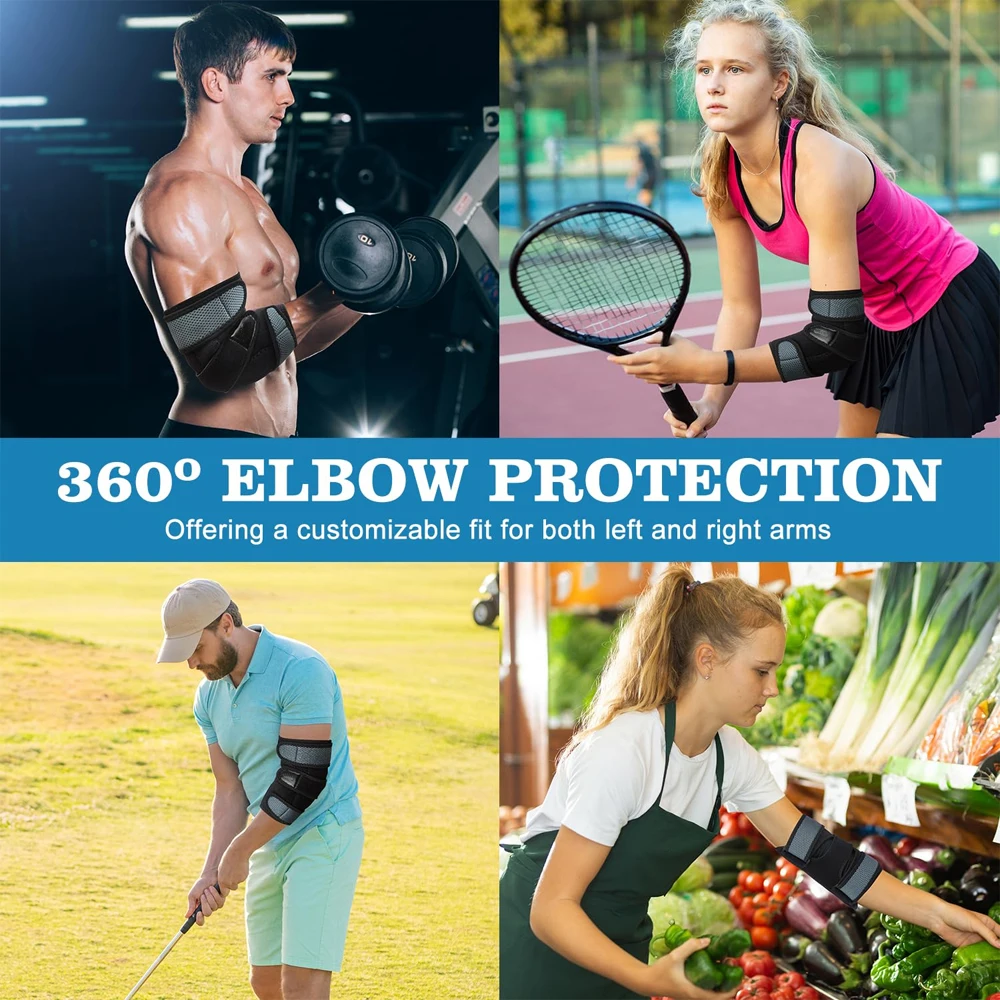 1. Pain Relief : This tennis elbow brace aims to reduce pain and discomfort in the elbow by providing support and compression, effectively alleviating pain caused by conditions such as Tendonitis, Arthritis,Cubital Tunnel Syndrome, Tennis elbow,Ulnar Nerve Entrapment, etc.