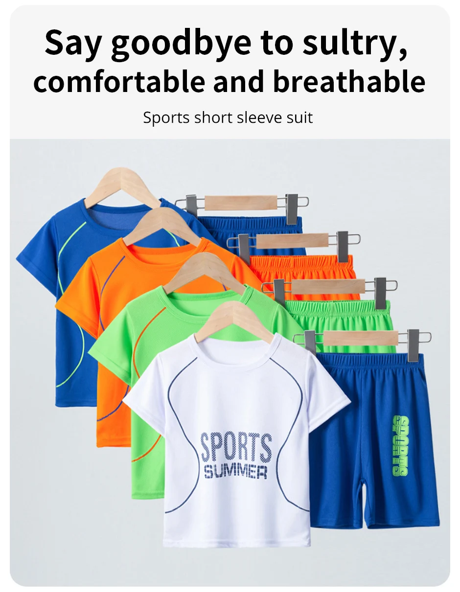 2/4 Pcs Of Summer Children's Quick-drying Sports Color Suit Boys Running And Playing Breathable Short-sleeved Girls Joker Shorts