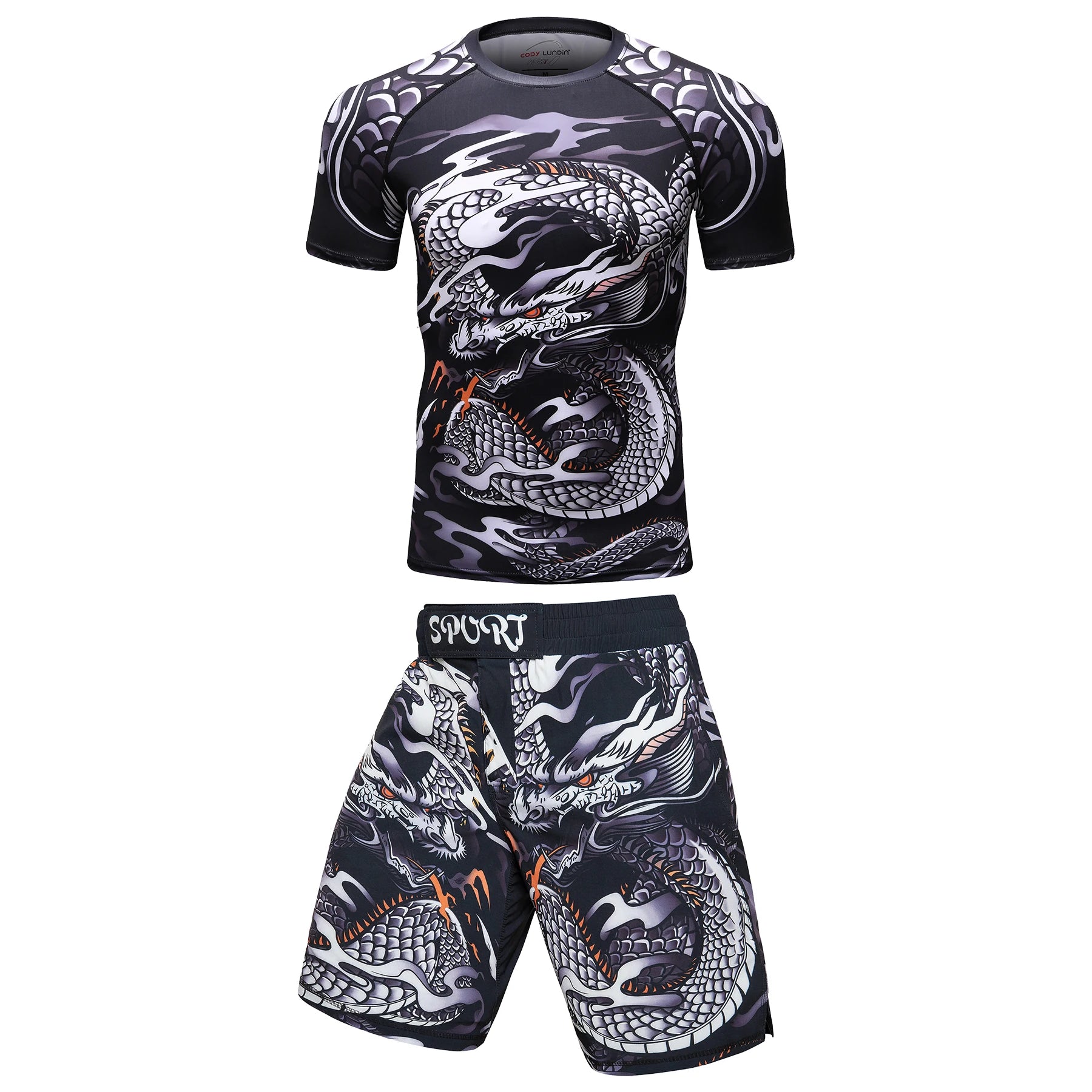 2 PCS Sports Suit Bjj Jiu jitsu gi Rashguard+MMA Shorts Muay Thai Pants Cool Boxing Grappling Wear Gym Fitness Running Clothes