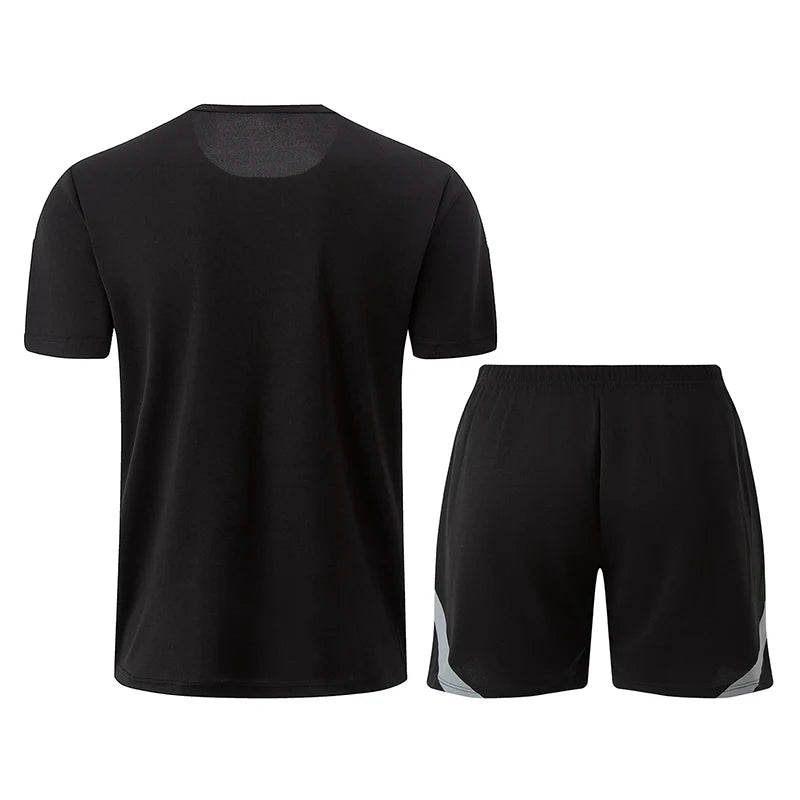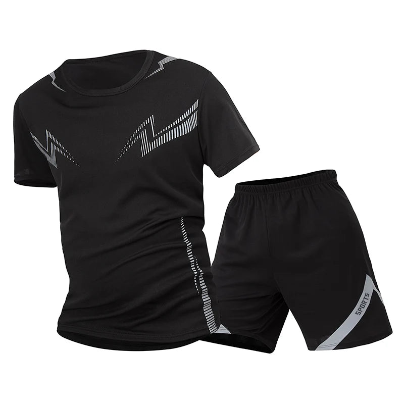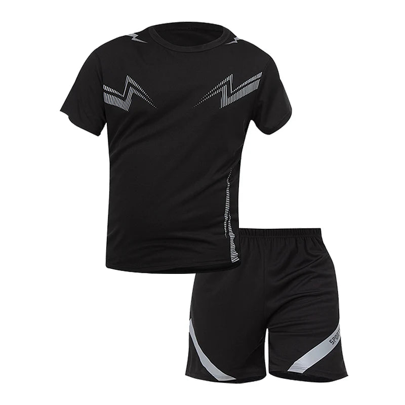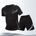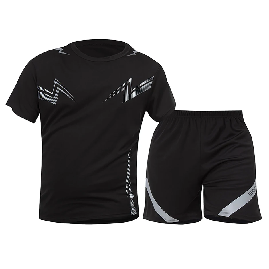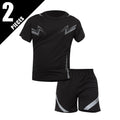 2 Pieces Men's Black Lightning Quick-drying Loose Sports Suit Basic Joker Teenagers Outdoor Fitness Running Short-sleeved Shorts