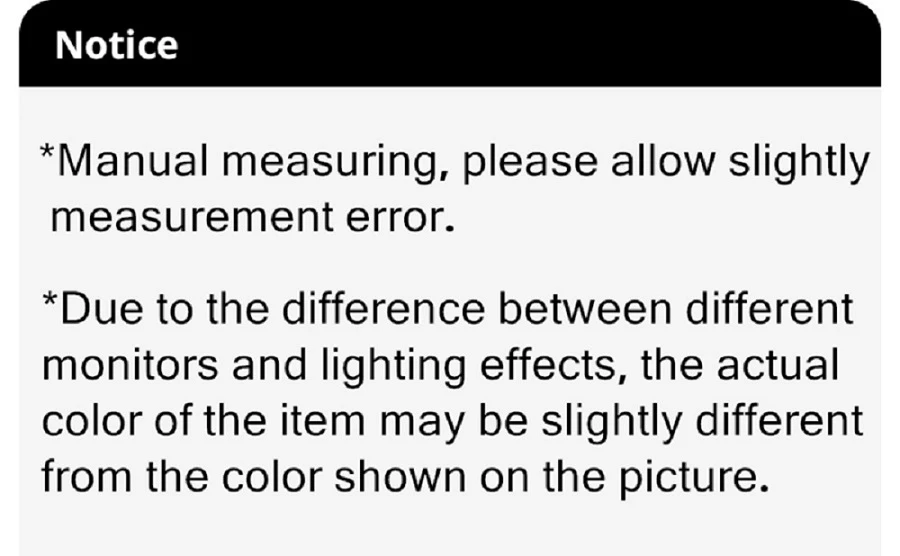 1. Manual measuring, please allow slightly measurement error.