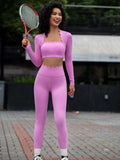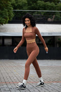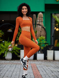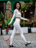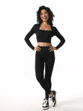 2 Pieces Yoga Sets Women Long Sleeve Shirts With Pads&High Waist Leggings Super Stretchy Fitness Suits Pilate Workout Clothing