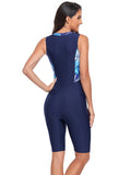 2024 New Leaf Print Patchwork Sport Swimwear Women Zipper One Piece Swimsuit Female Surfing Suits Professional Bathing Suit Swim