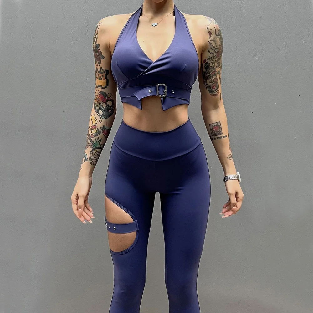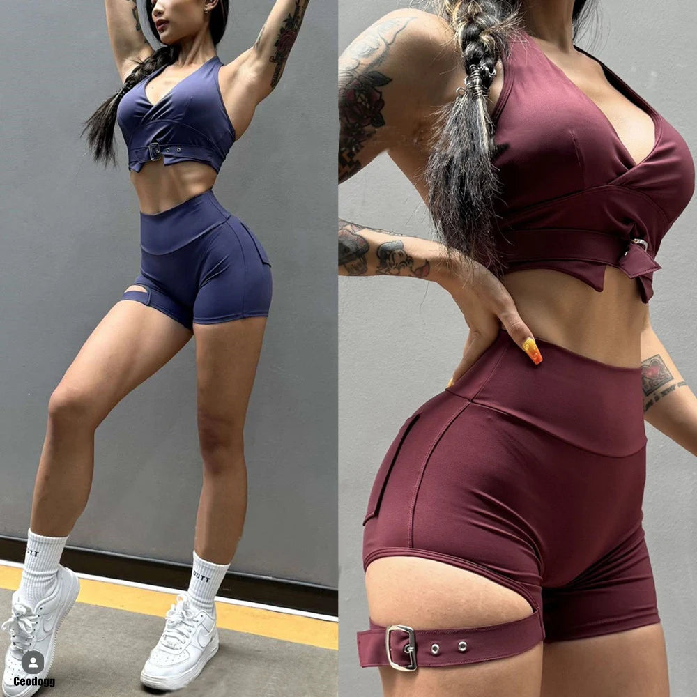 2025 1/2PCS Pad Women Crop Buckle Bra Leggings Yoga Set Scrunch Workout Pant Fitness Gym Sports Squat Proof Legging Outfit Suits