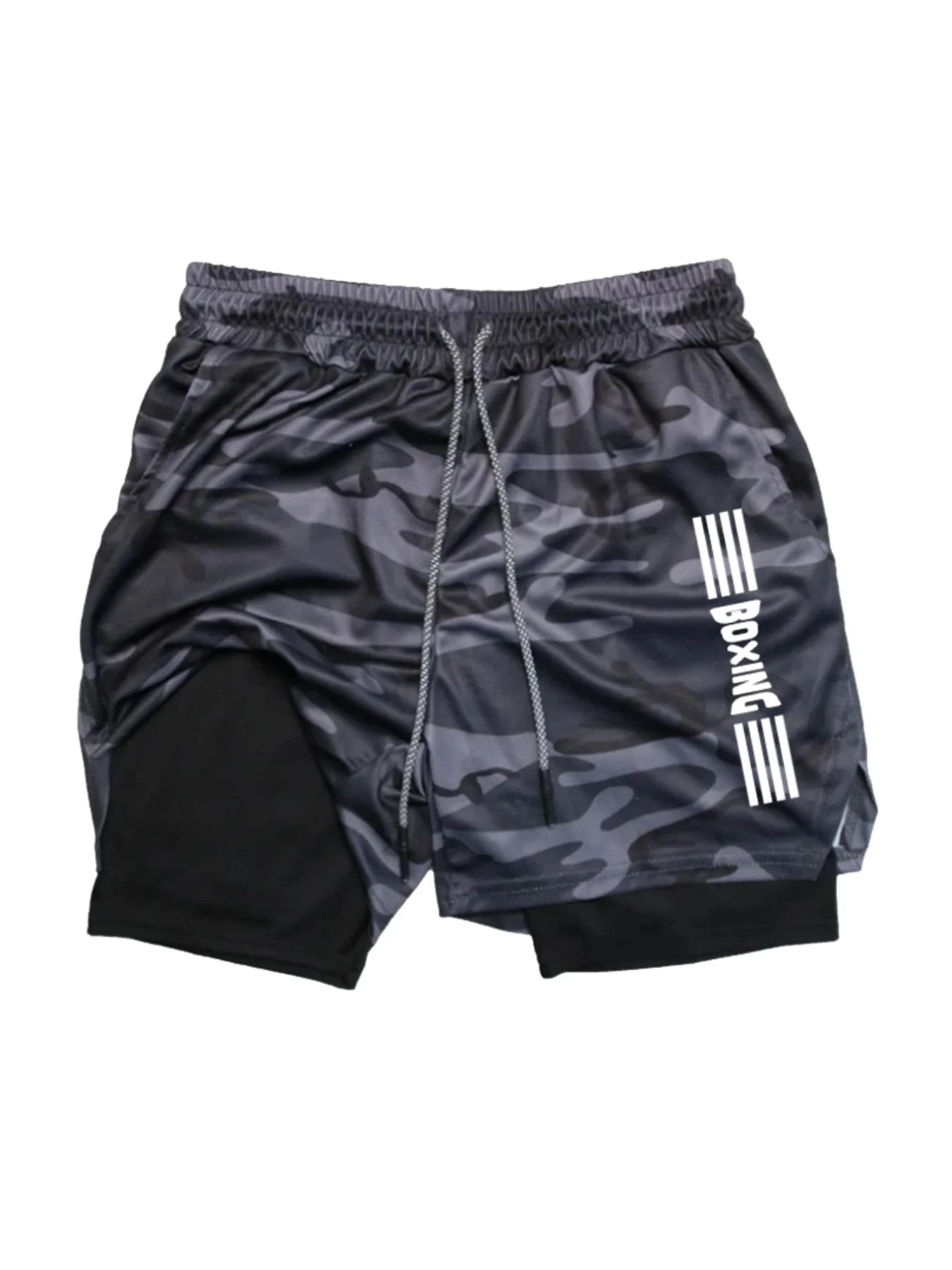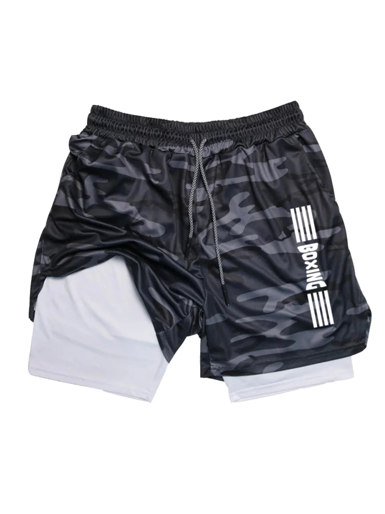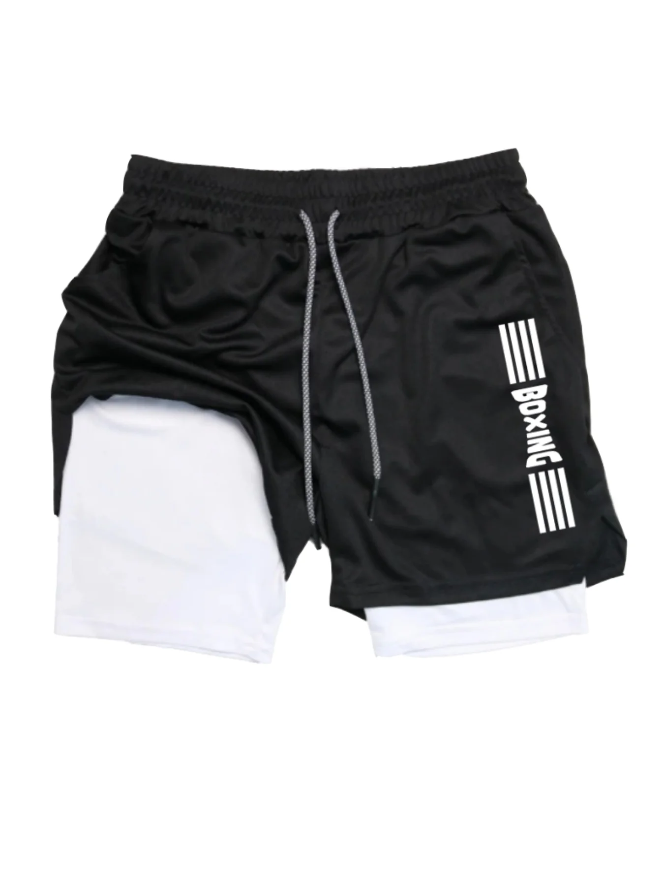 2025 new summer boxing shorts printed fitness sports two in one shorts breathable quick drying sports training underwear for men