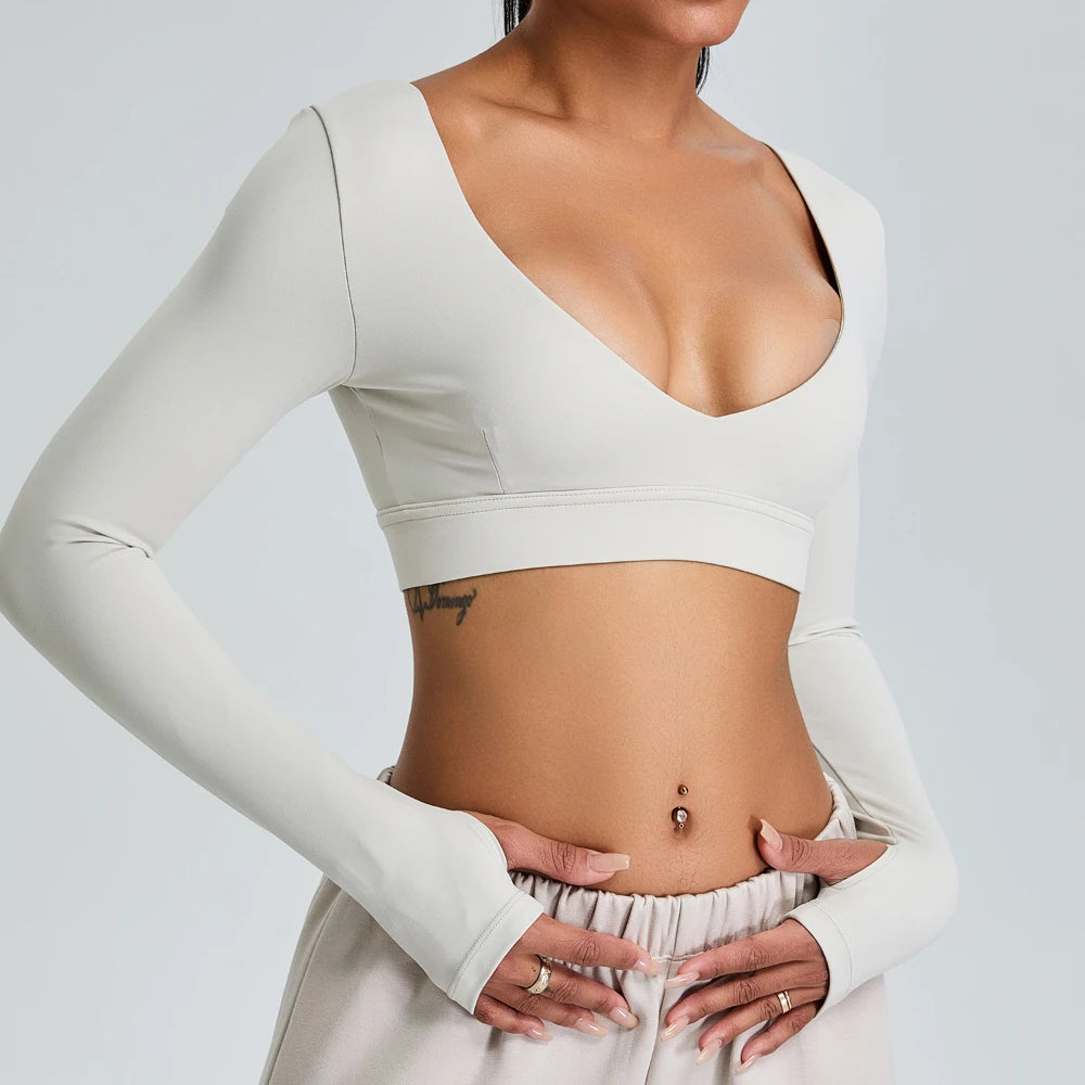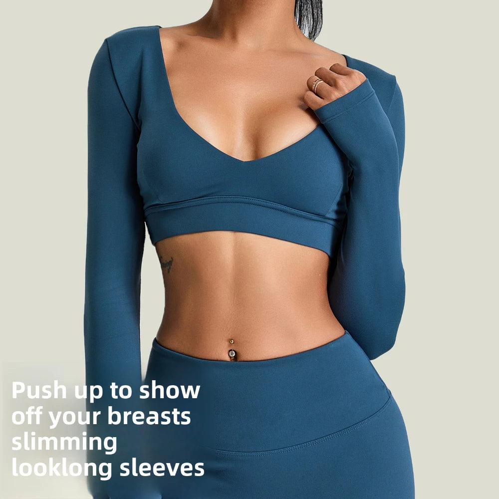 2025 New Women's Ultra Breathable And Quick Drying Sexy V Neck Long Sleeve Yoga Wear High - grade Sports T Shirt Ideal For Yoga