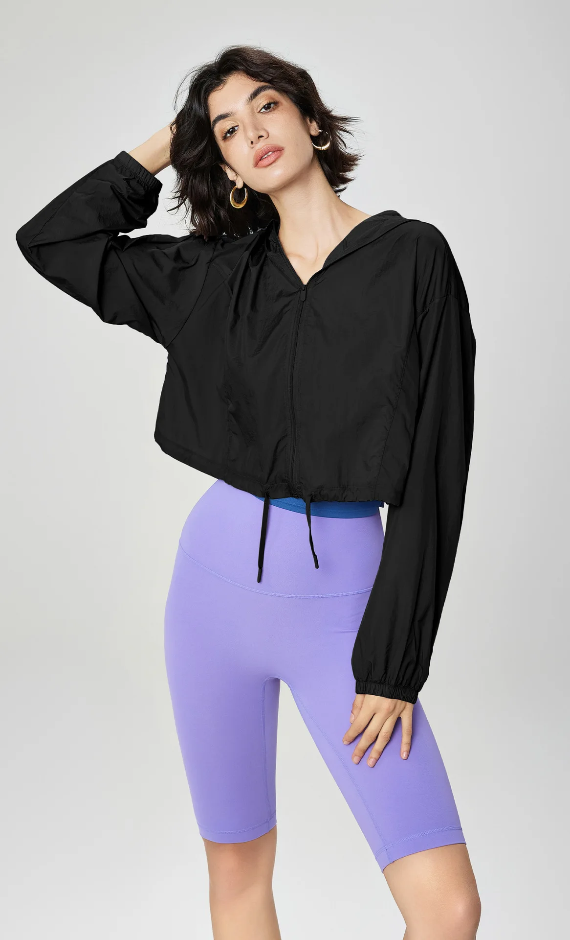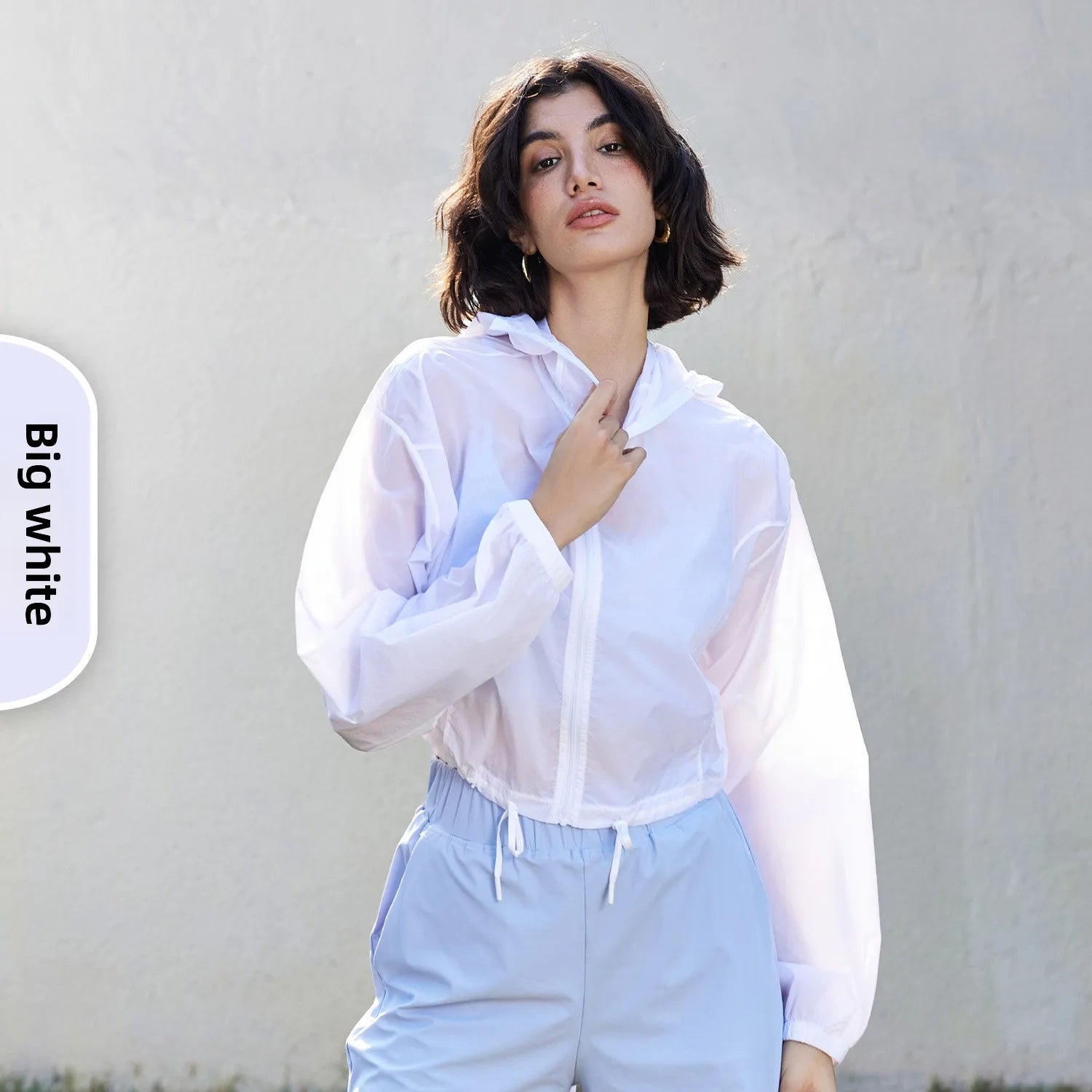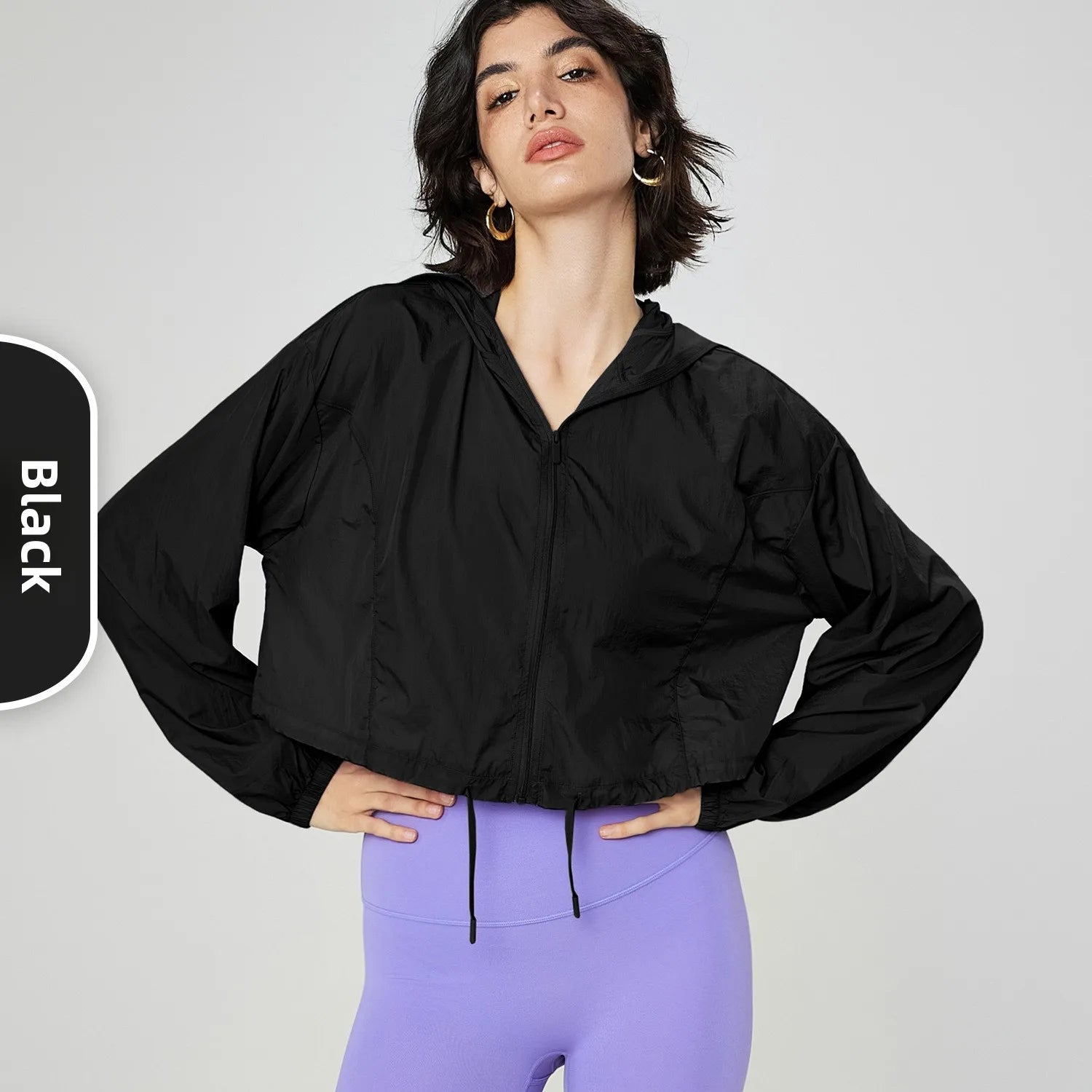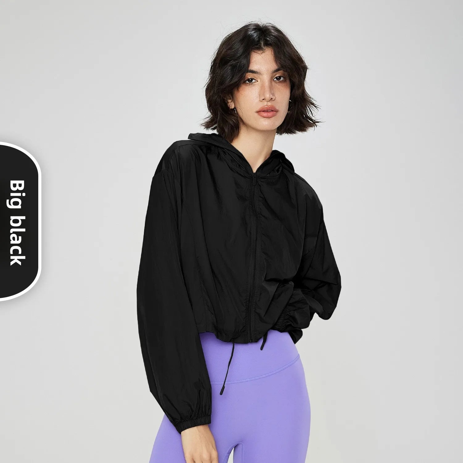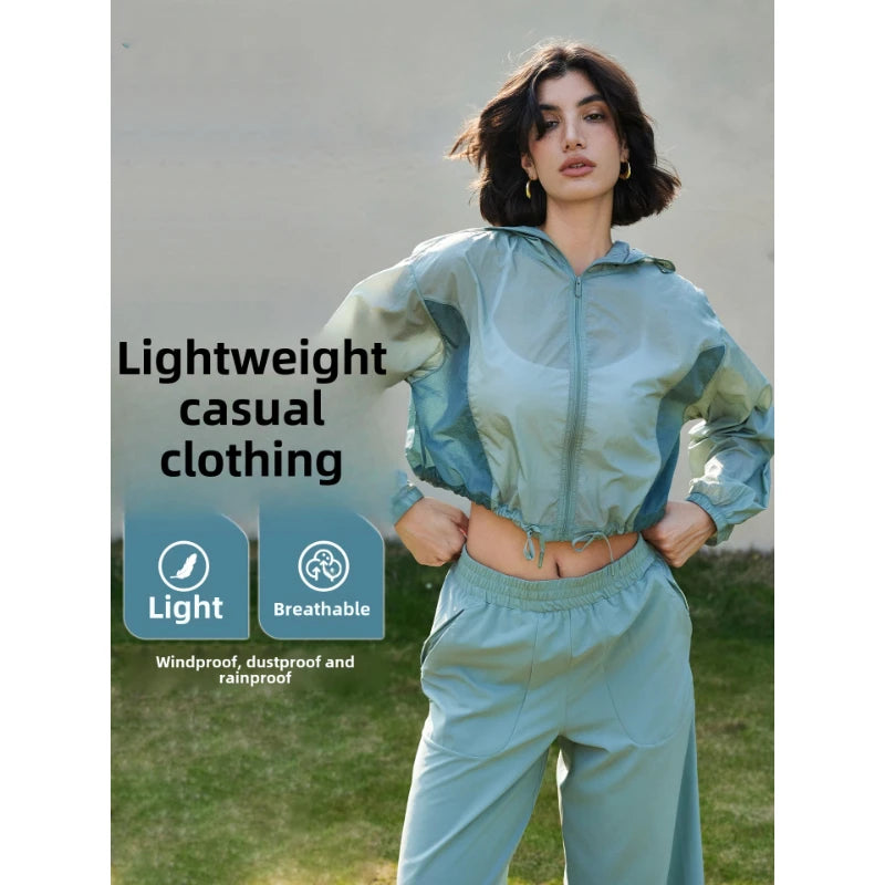 2025 Women's Lightweight Breathable Quick Dry Hooded Drawstring Loose Fit Long Sleeve Activewear Summer Outdoor Gym Workout
