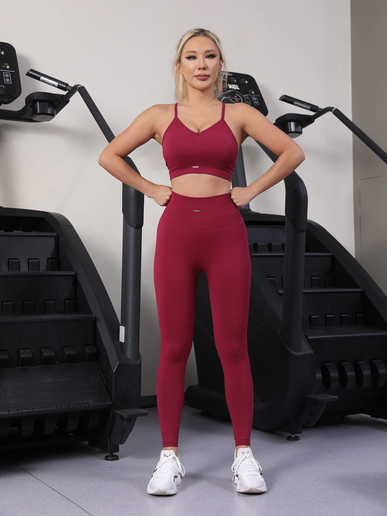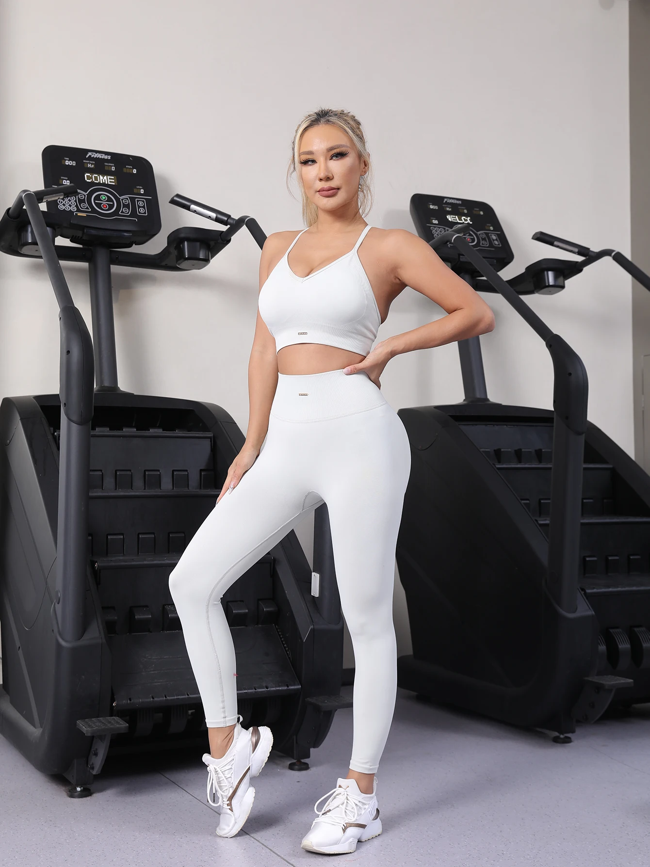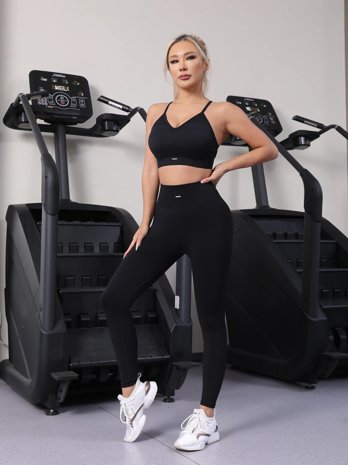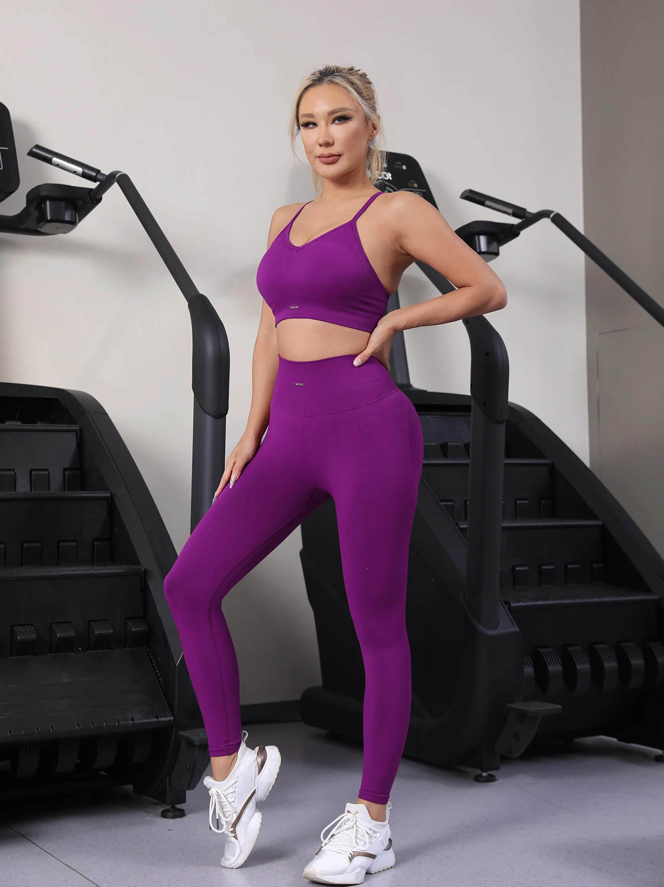 2PCS Women's Seamless Yoga Set Strappy Sports Bra with Pads & High Waisted Leggings Workout Outfit Quick Dry Gym Suit