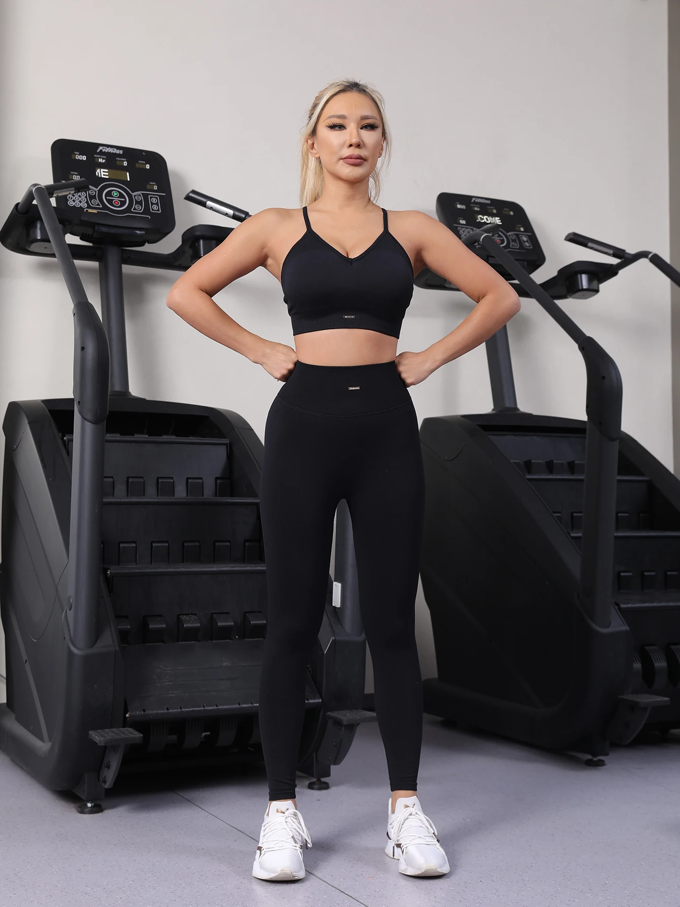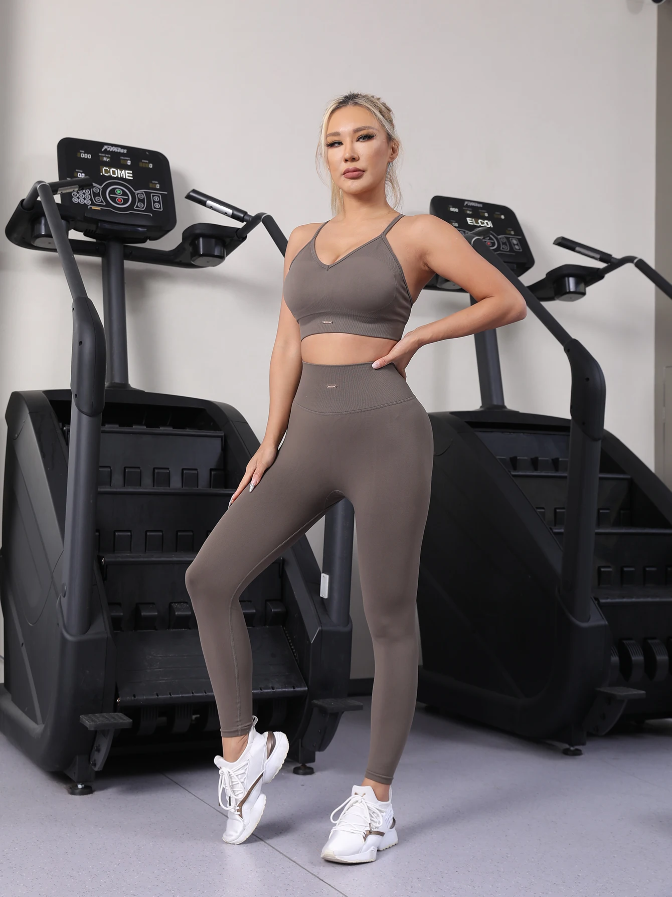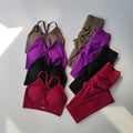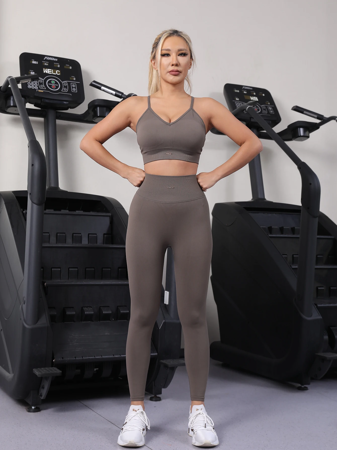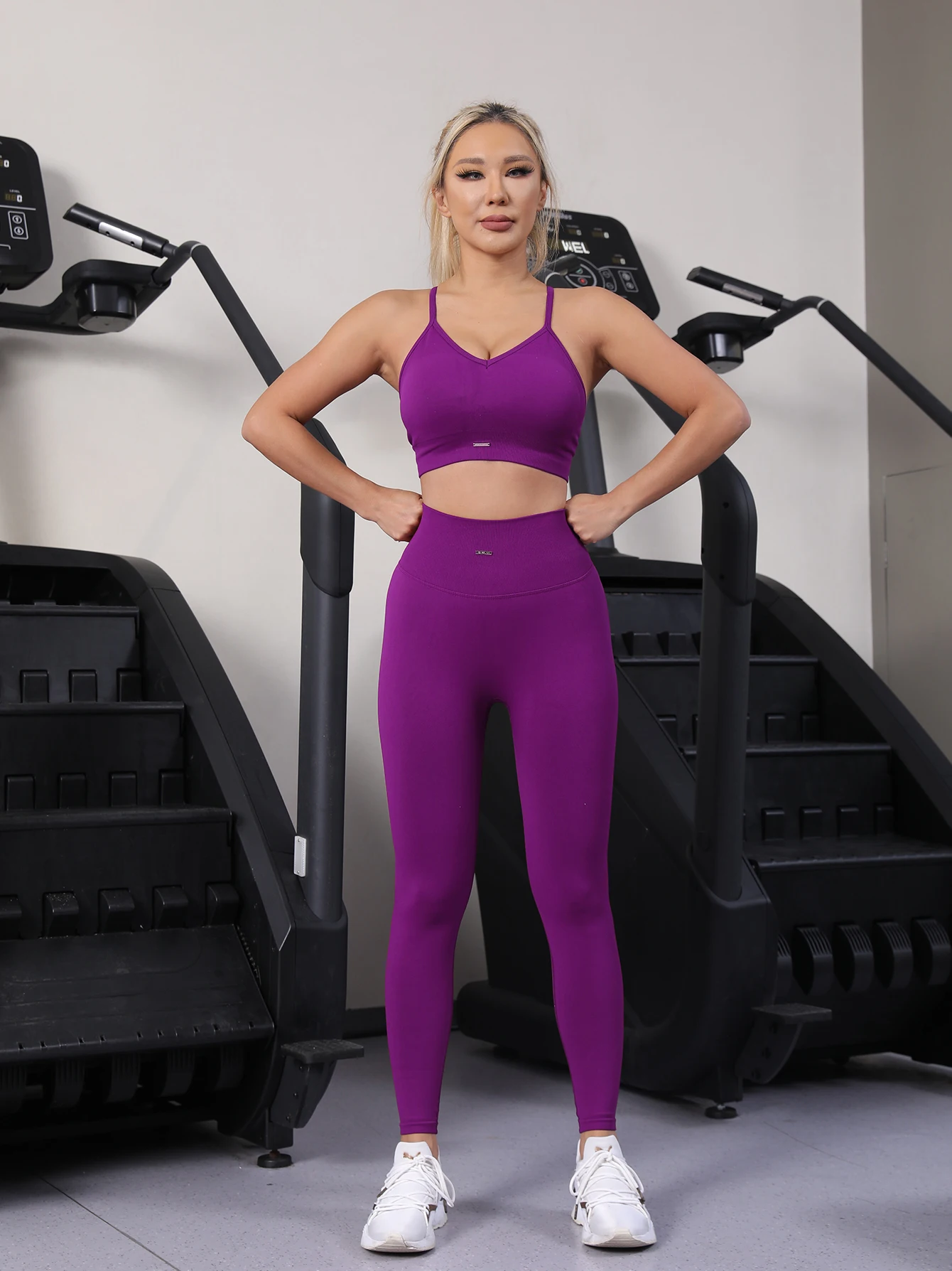2PCS Women's Seamless Yoga Set Strappy Sports Bra with Pads & High Waisted Leggings Workout Outfit Quick Dry Gym Suit