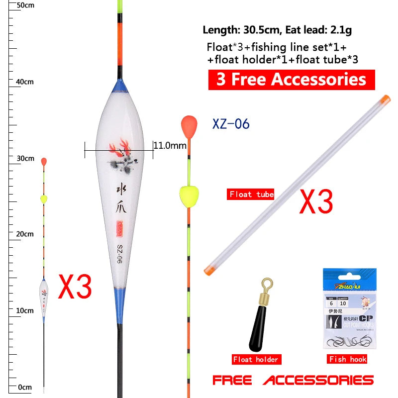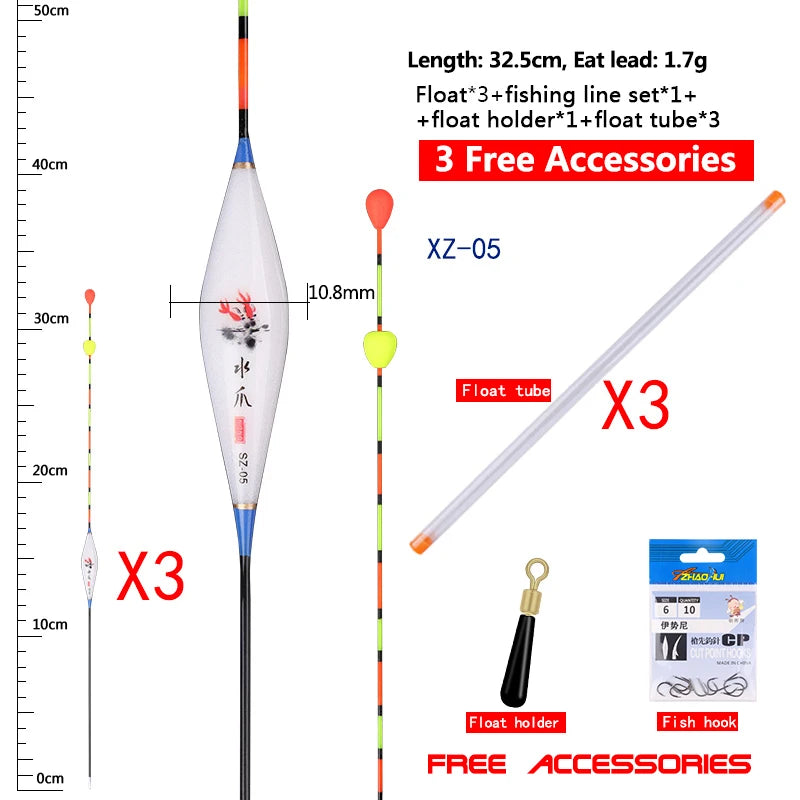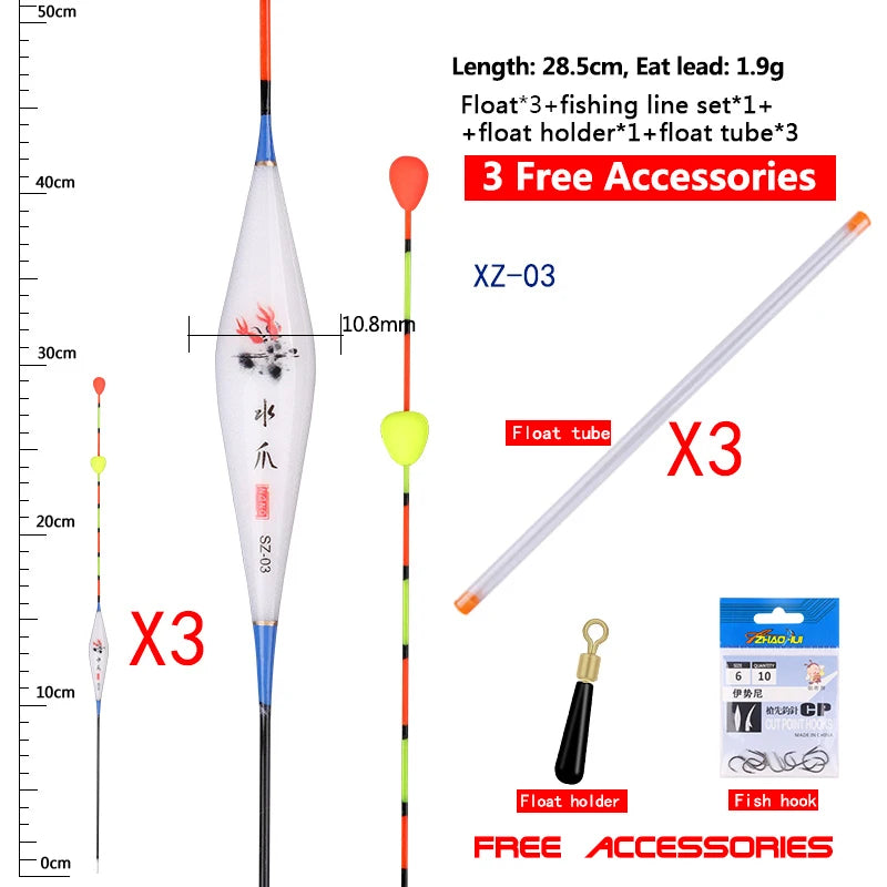 3PCS Floats With Sliding Bead Tail+3 Buoy Tubes+1 Fishing Line set+1 Float Holder Nano Lake River Bobber Fishing Tools Tackle