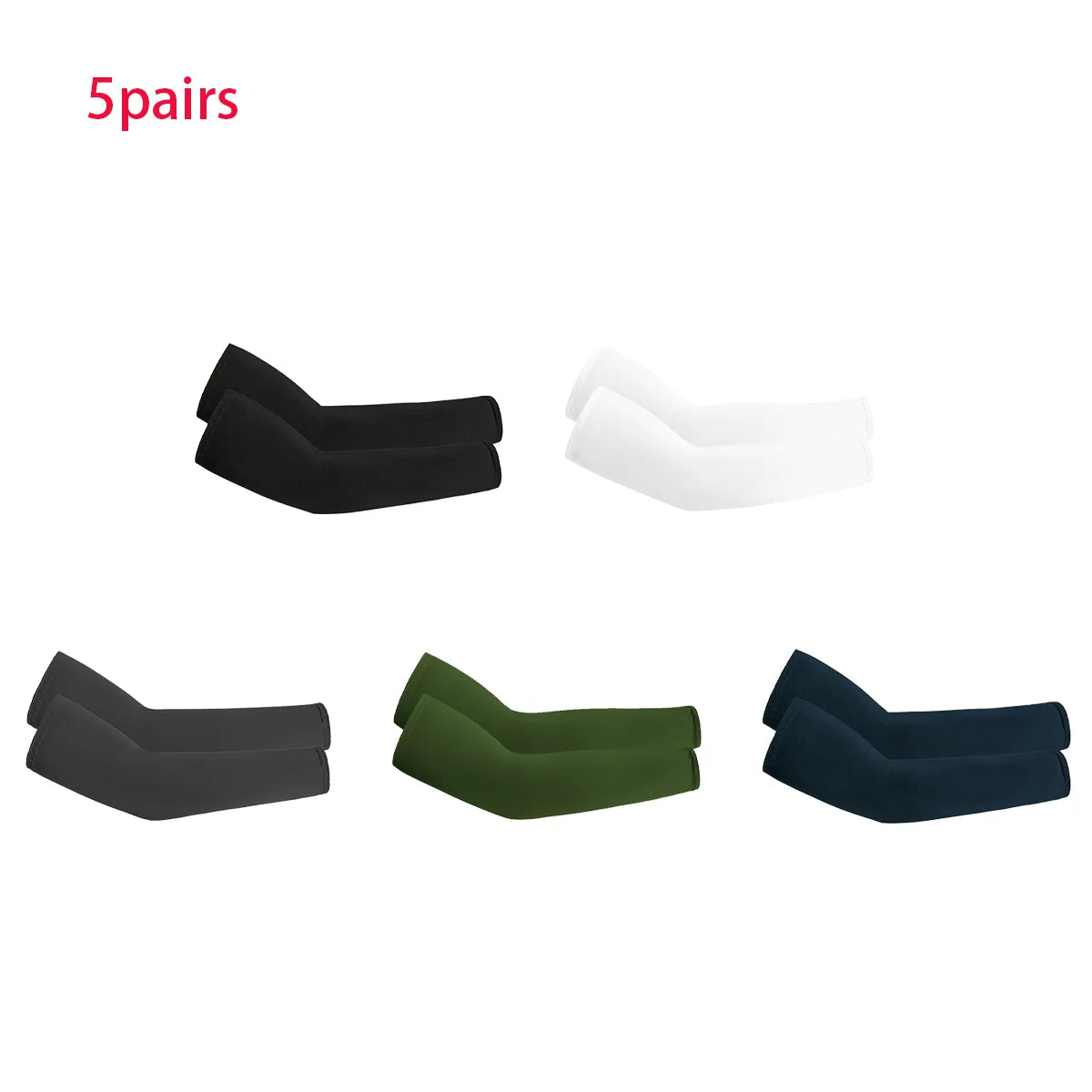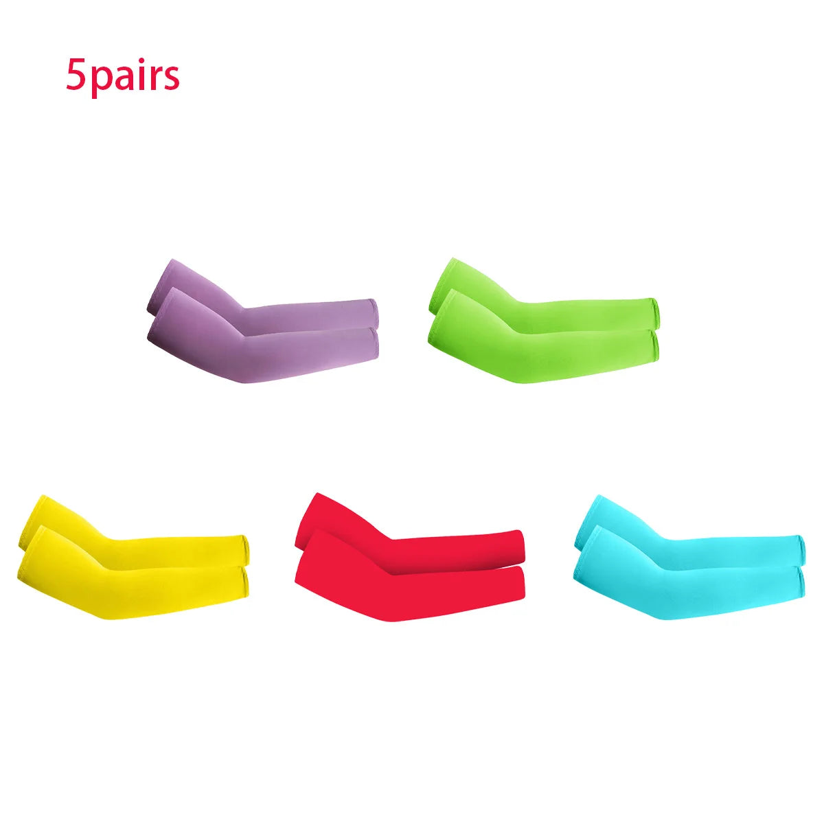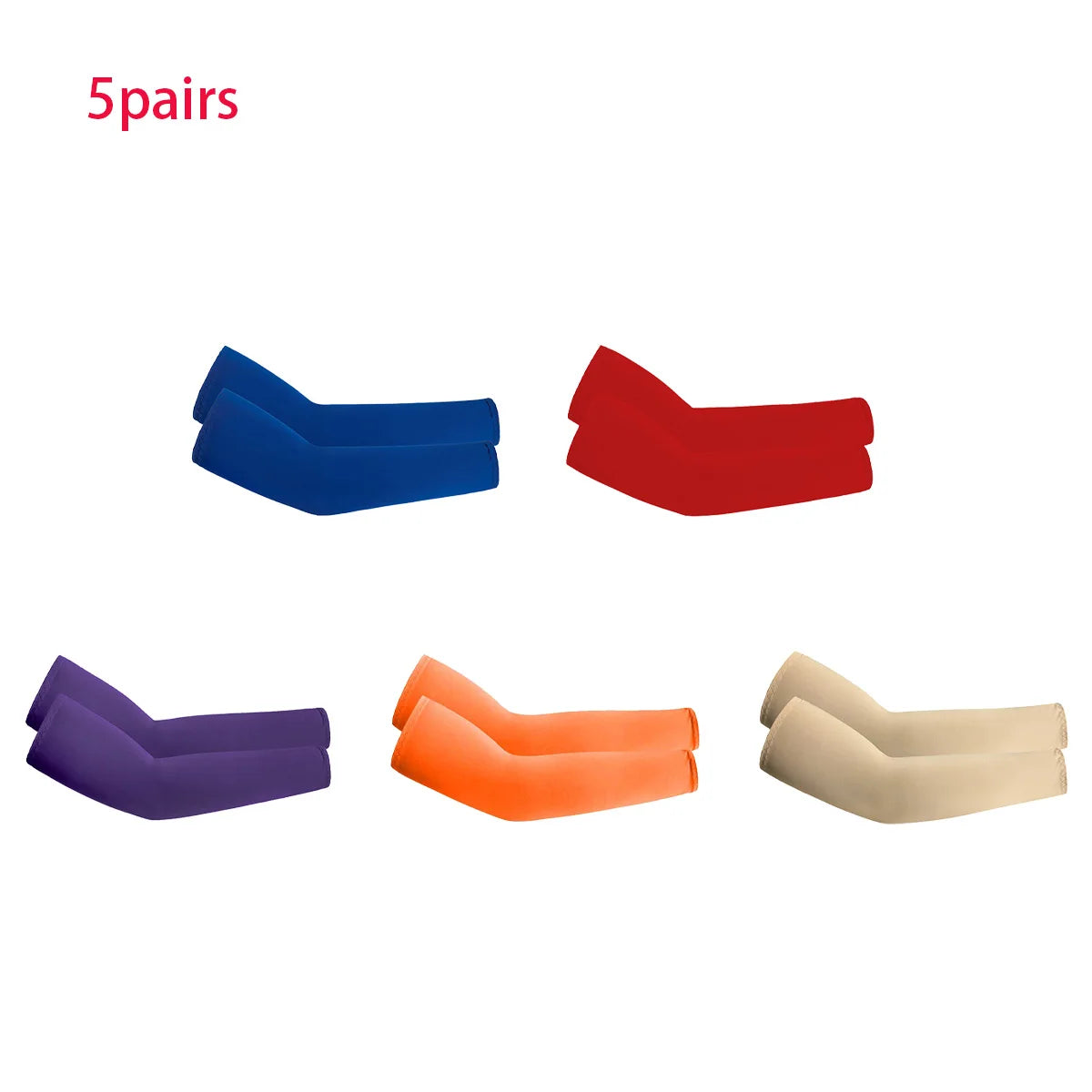 5 Pairs of Short Ice Silk Arm Guards | Unisex Breathable and Lightweight Ice Sleeves | 8% Spandex Pure Color Outdoor Sports Sleeves