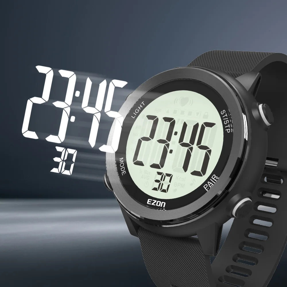 This is a multi-functional watch combines time, calendar, alarm, chronograph, stopwatch and also heart rate monitor function.