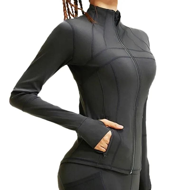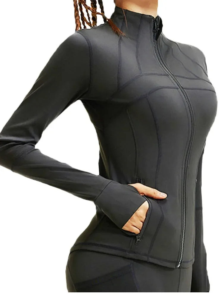 women slim fit tops yoga jackets: with thumb hole sports tops women running jackets women running shirt
