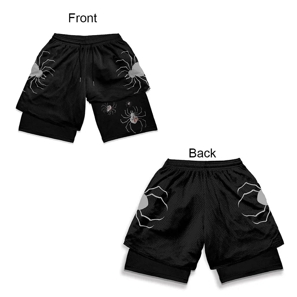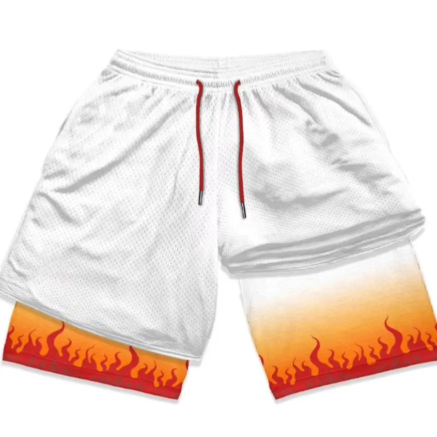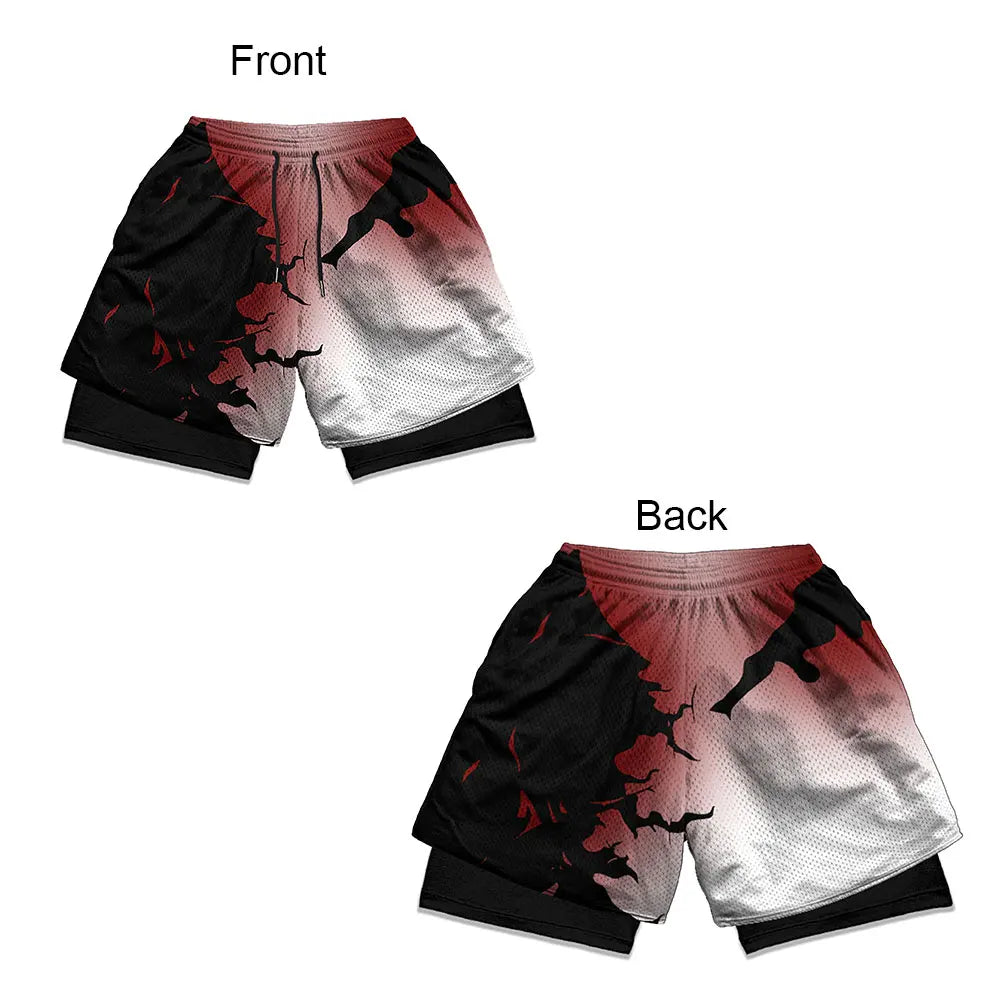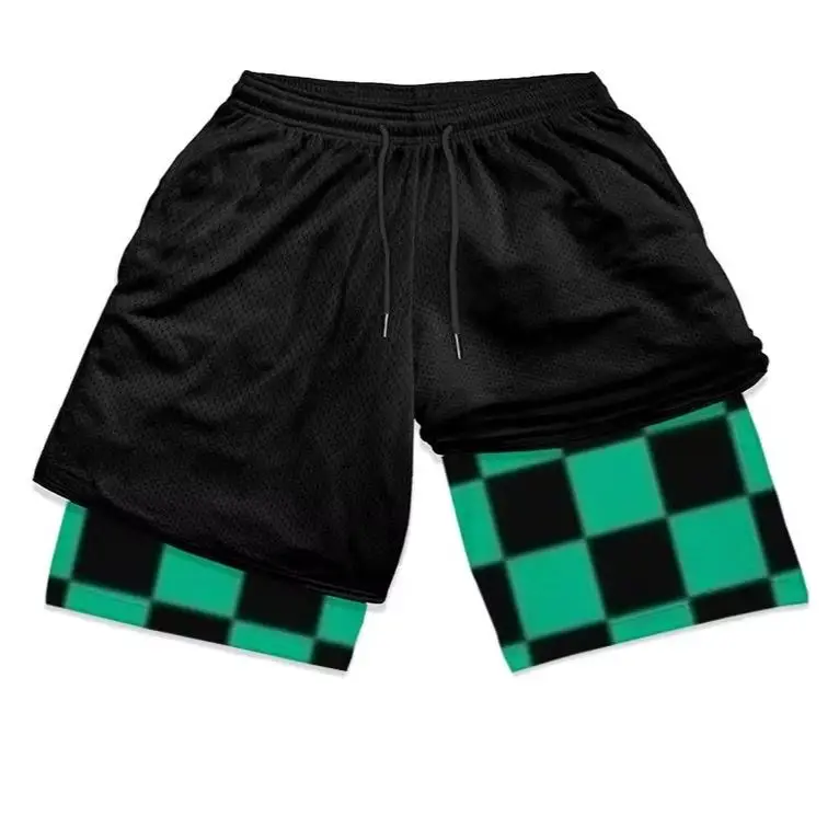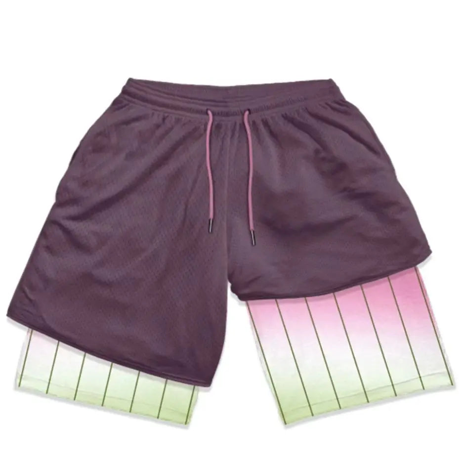 Anime Demon Slayer Running Shorts 2 In 1 Double-deck Sport Shorts Sportswear Gym Fitness Short Pants Training Jogging Bottom