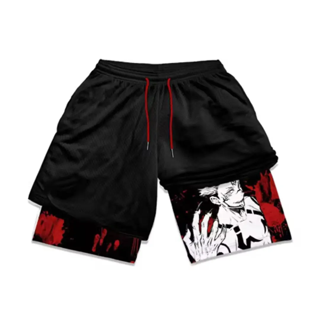 Anime Jujutsu Kaisen Running Shorts 2 In 1 Double-deck Sport Shorts Sportswear Gym Fitness Short Pants Training Jogging Bottom