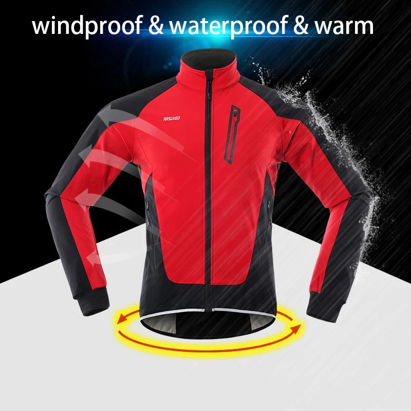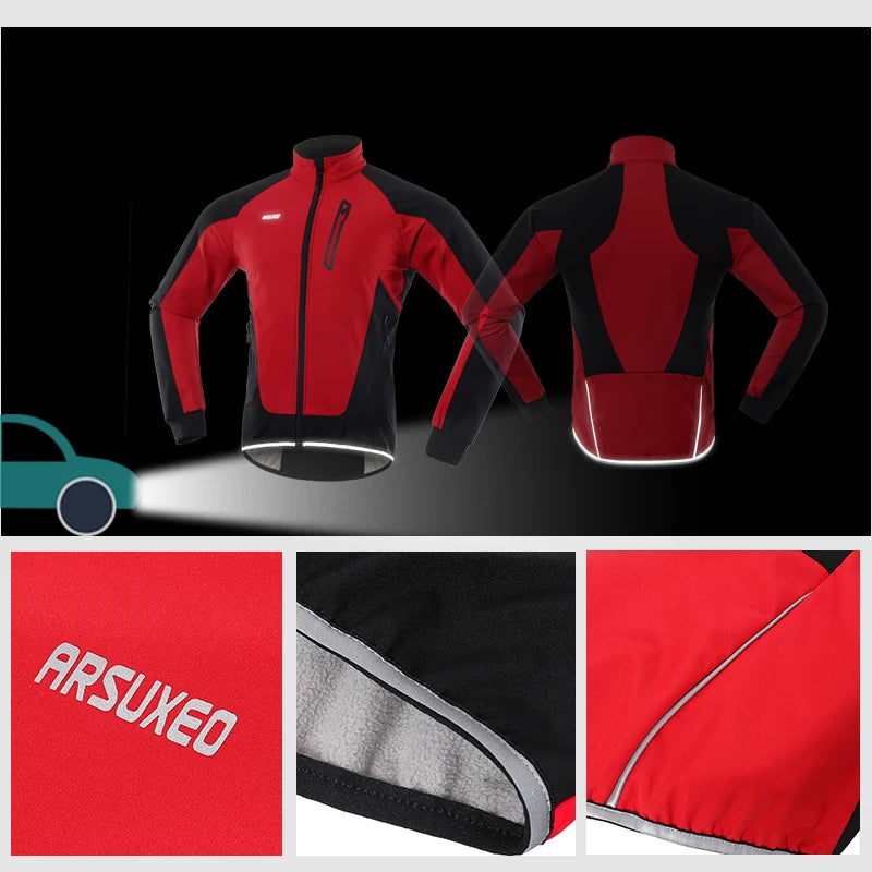 ARSUXEO Men's Winter Cycling Jacket Thermal Fleece Warm Up Bicycle Clothing Windproof Waterproof Soft Shell Coat MTB Bike Jersey