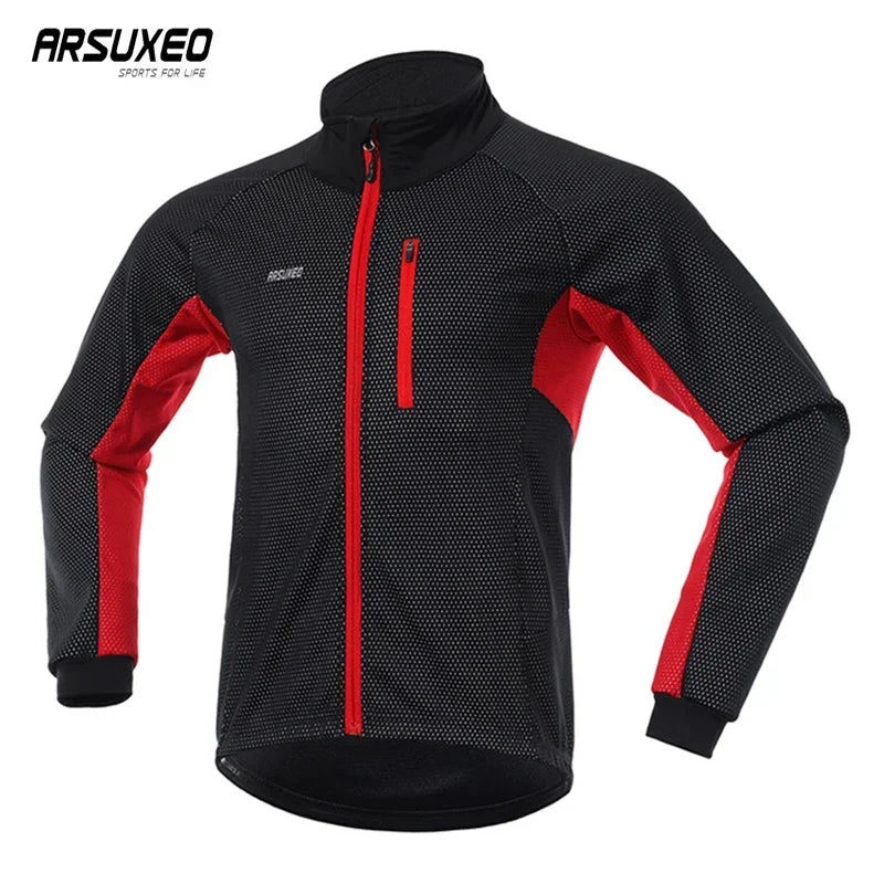 ARSUXEO Winter Thermal Cycling Jacket Night Reflective Bicycle Jersey Windproof Waterproof Men Coat Mtb Road Bike Clothing