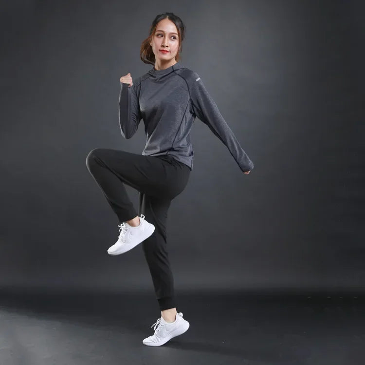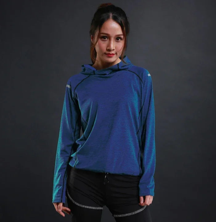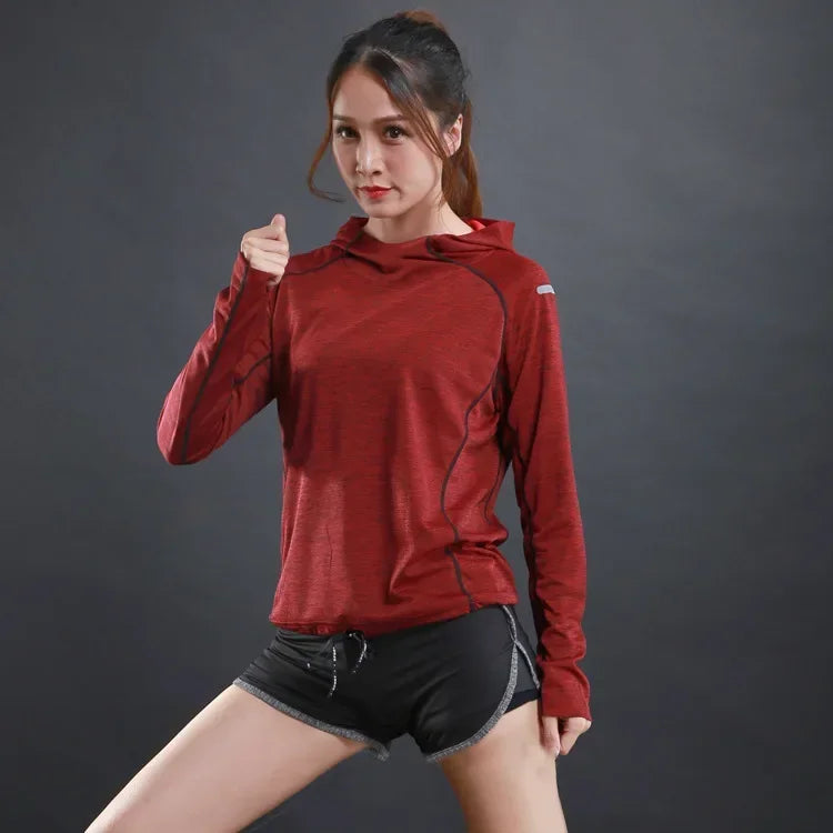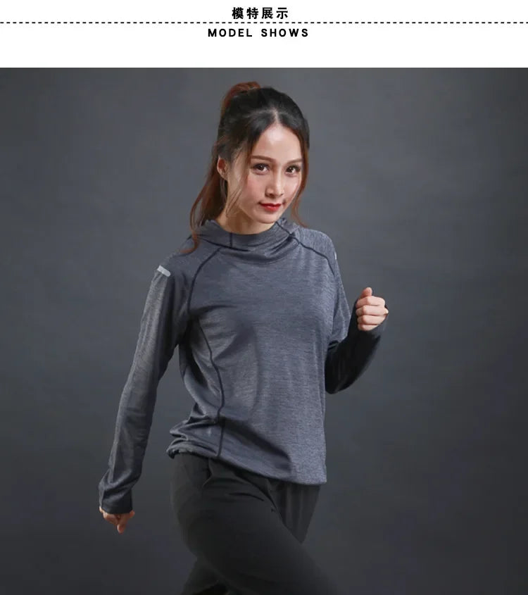 Autumn Thin Women Running T Shirts Gym Fitness Long Sleeves Sweatshirts Quick Dry Training Breathable Hood Sports Yoga Clothing