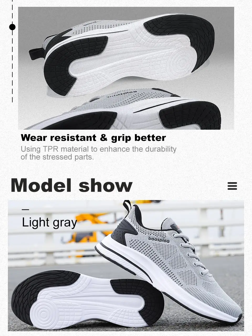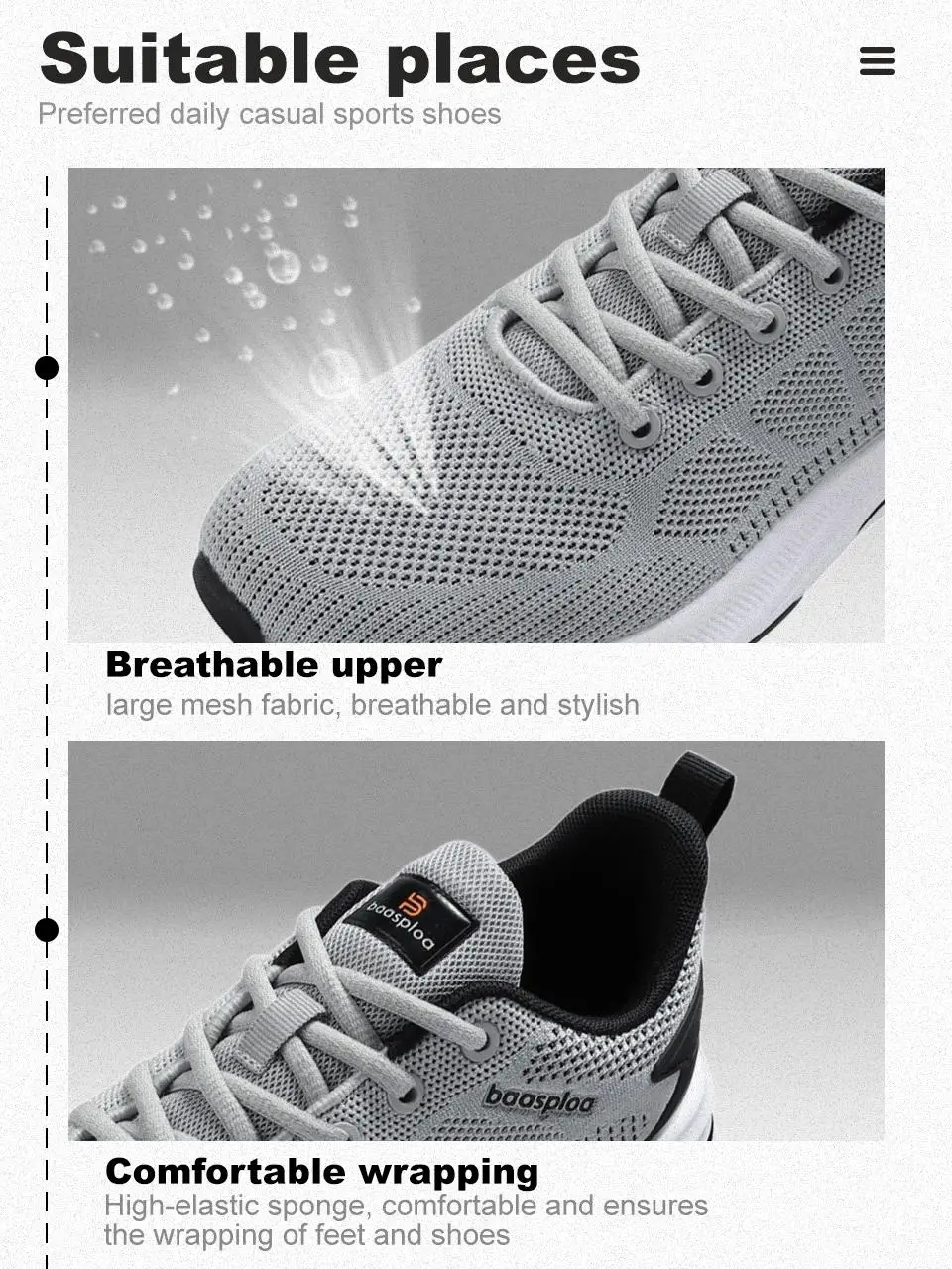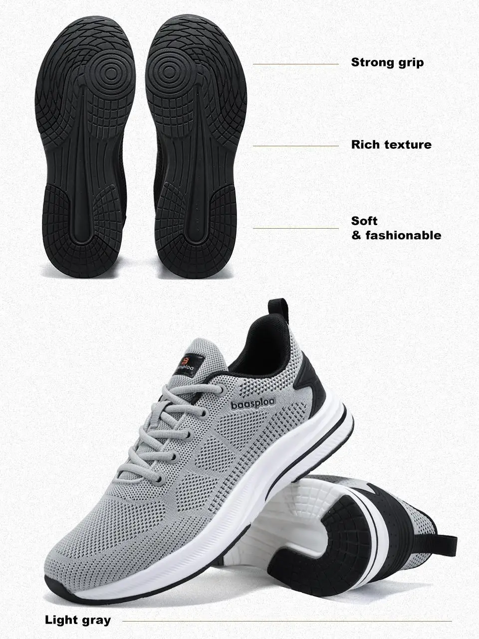 Baasploa Men Sport Shoes Breathable Lightweight Running Shoes for Men New Comfort Soft Sport Shoes Walking Non-Slip Lace-Up