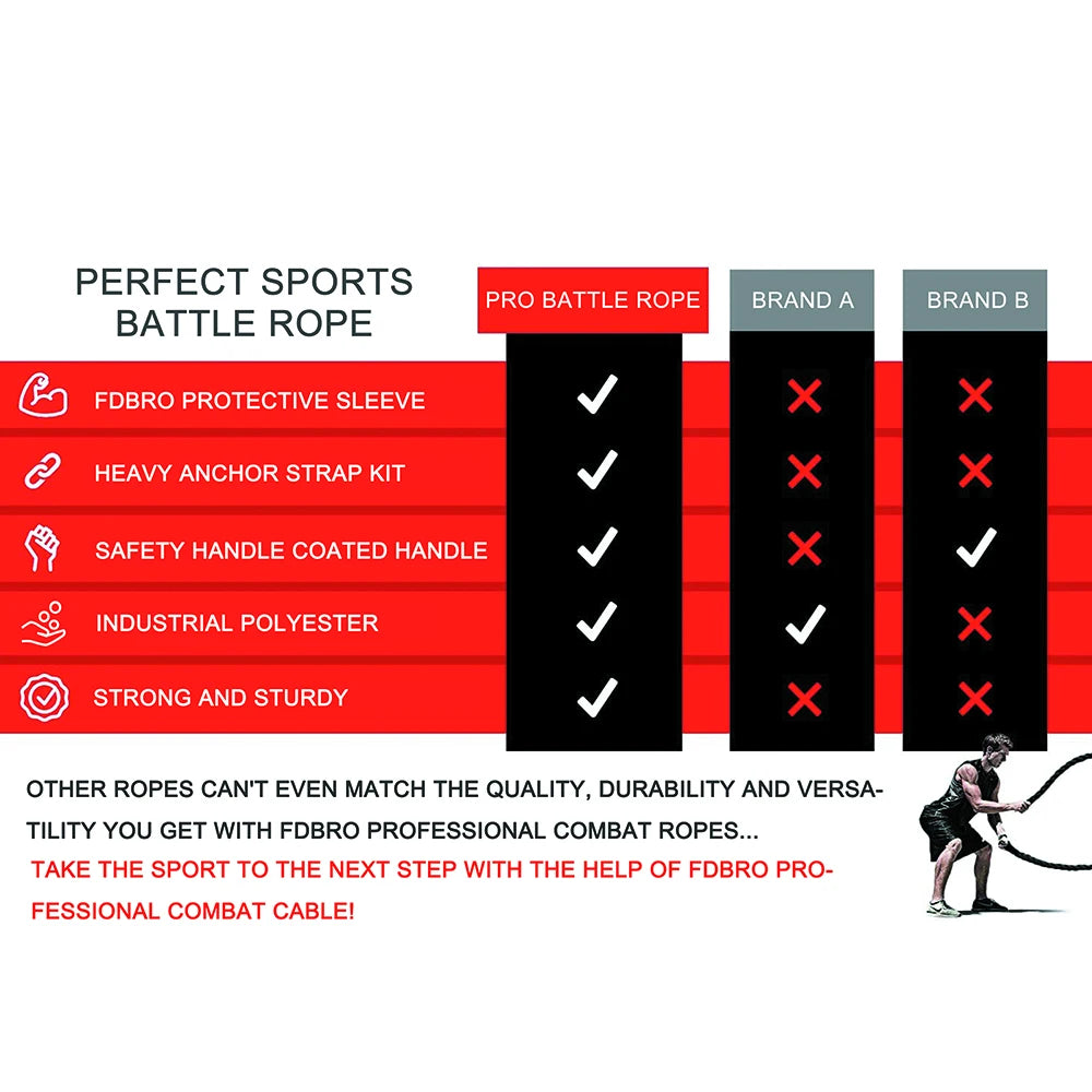FDBRO Battle Rope 38MM*3M 9M 12M 15M Length Fitness Polyester Heavy Jump Skip for Home Gym Body Workout Core Strength Training Muscle
