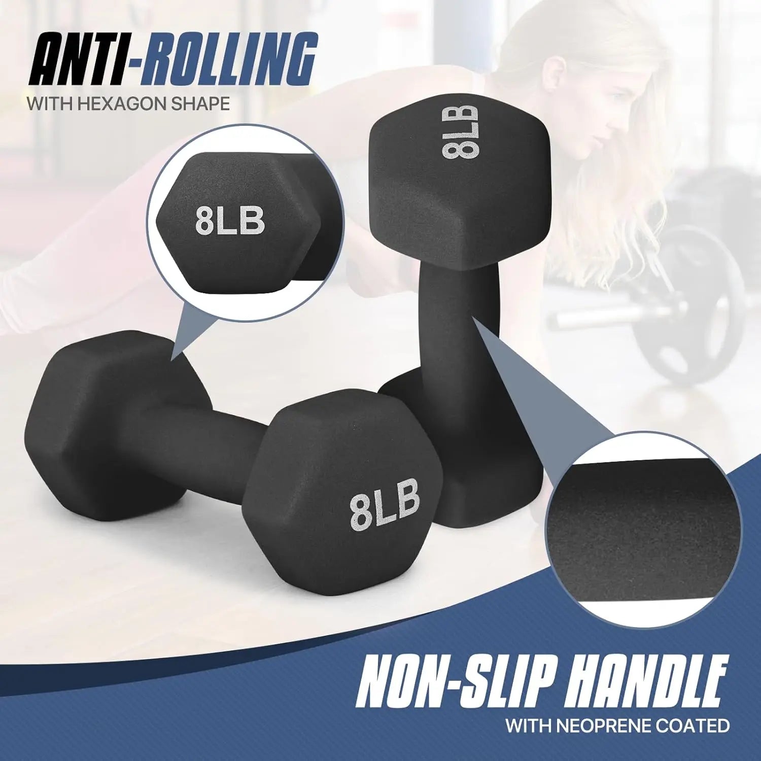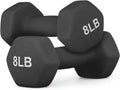 Black 8 Pound Dumbbell Pair, Anti-Slip Neoprene Coated Hexagon Hand Weights for Home Gym Equipment Workouts Strength Training