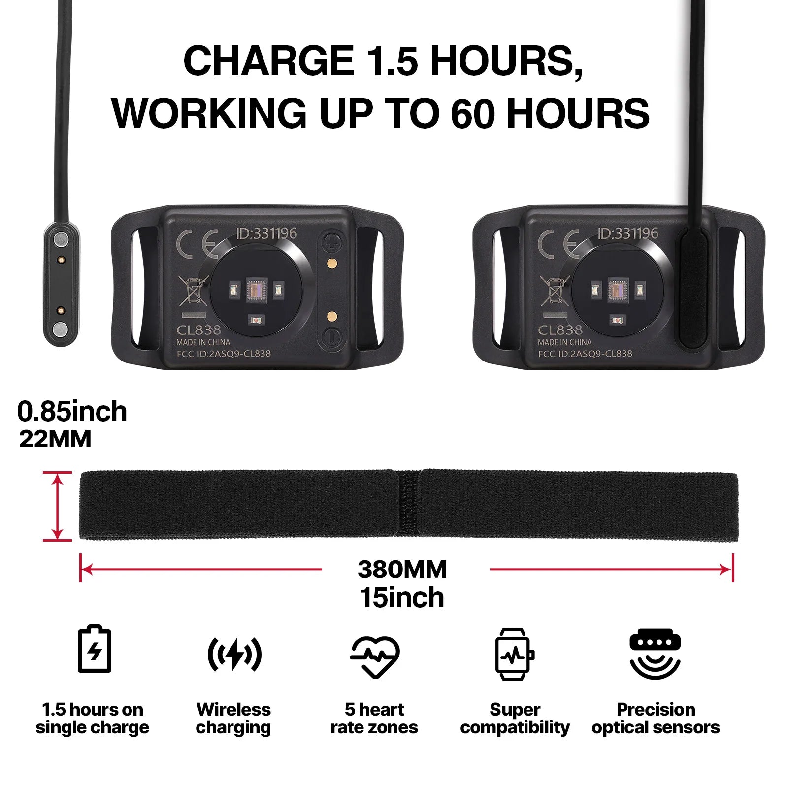 4.Extended use rechargeable battery allows you to workout 60 hours for continuous heart rate monitoring. You MUST to charge the device prior to the first use. The armband strap is customized with unique and latest technology, which is more elastic and breathable, comfortable and not easy to fall off.