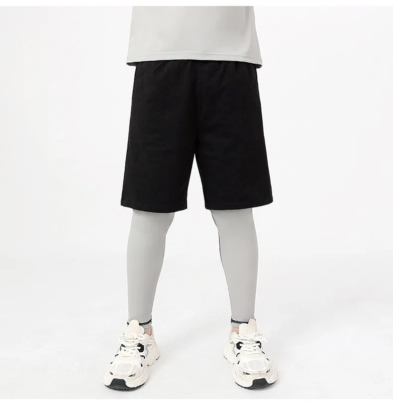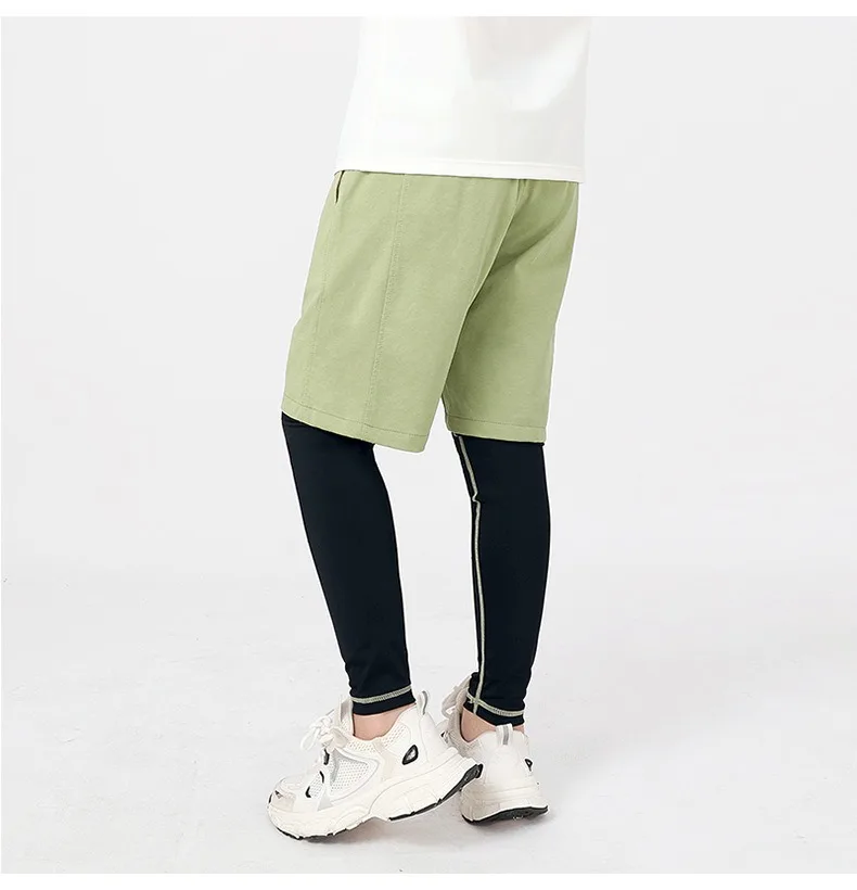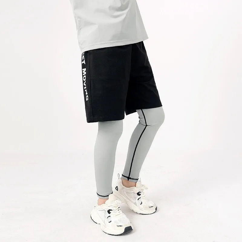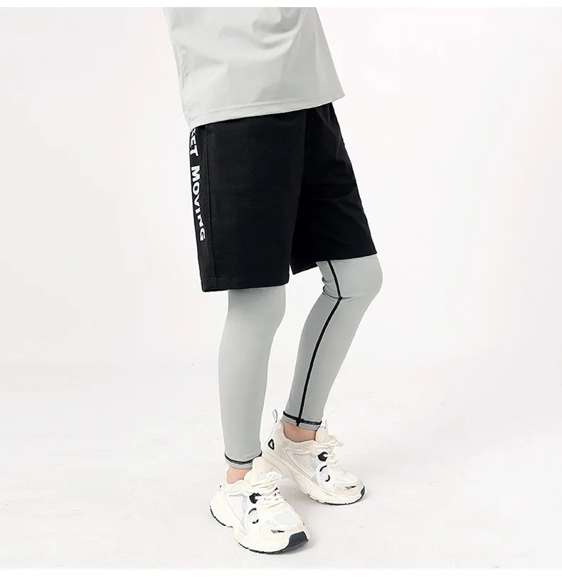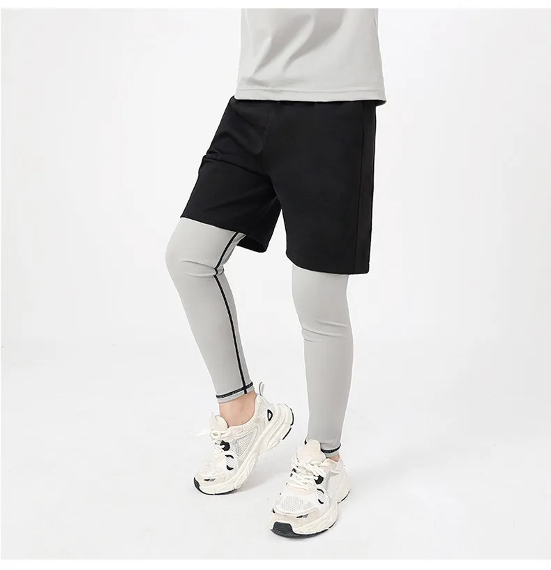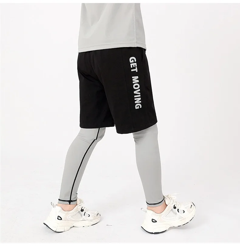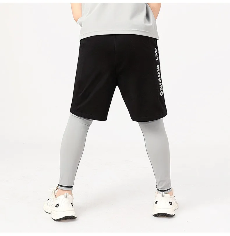 Boy's Basketball Shorts Leggings 2 in 1 Athletic Running Pants Quick-dry Fake Two Pieces Trousers Kids Trainning Tights Pants