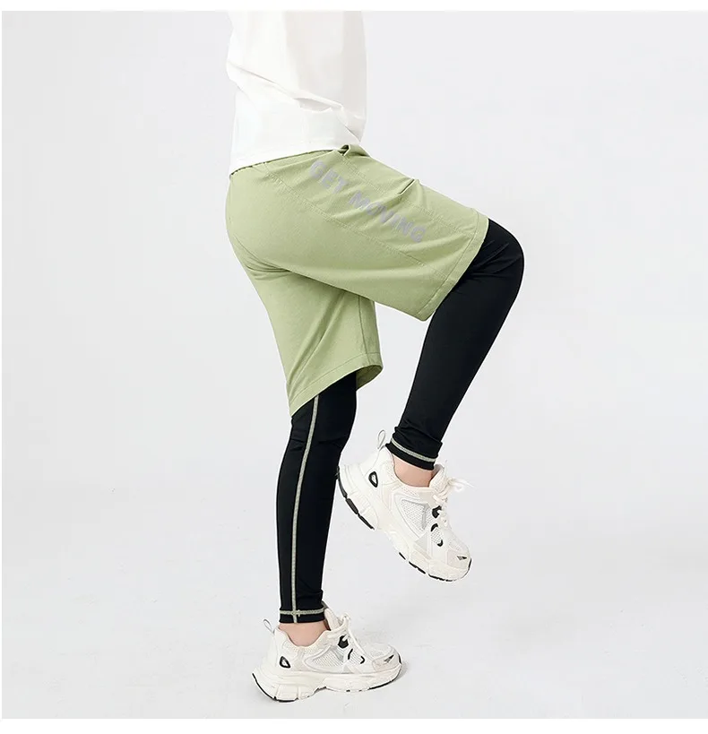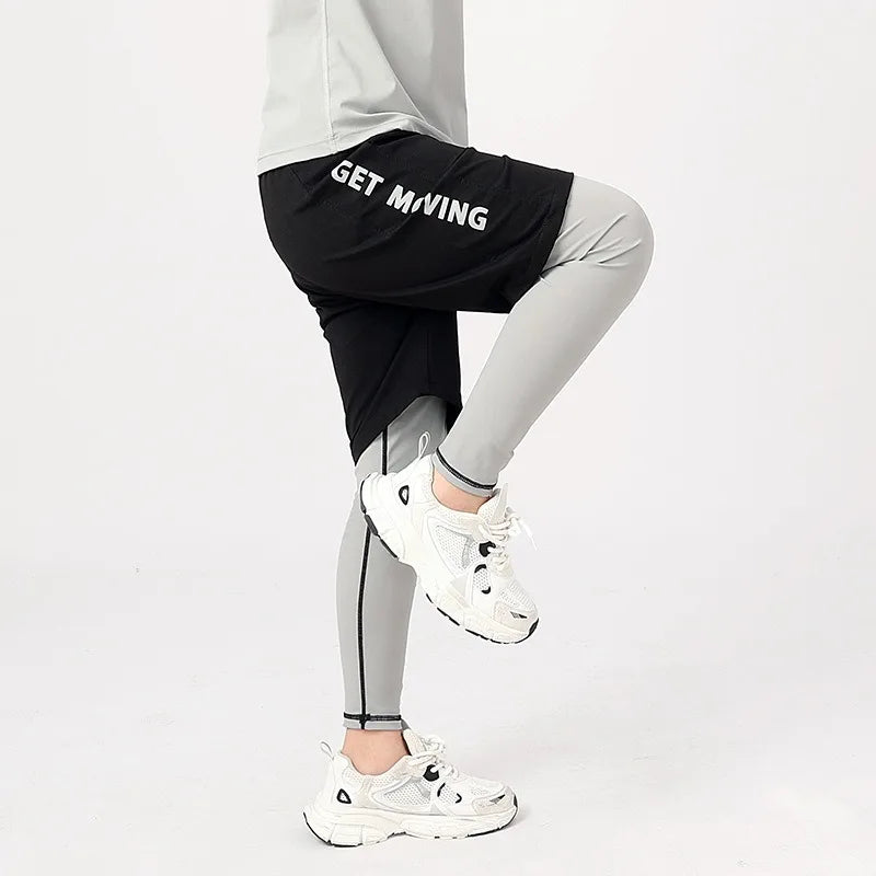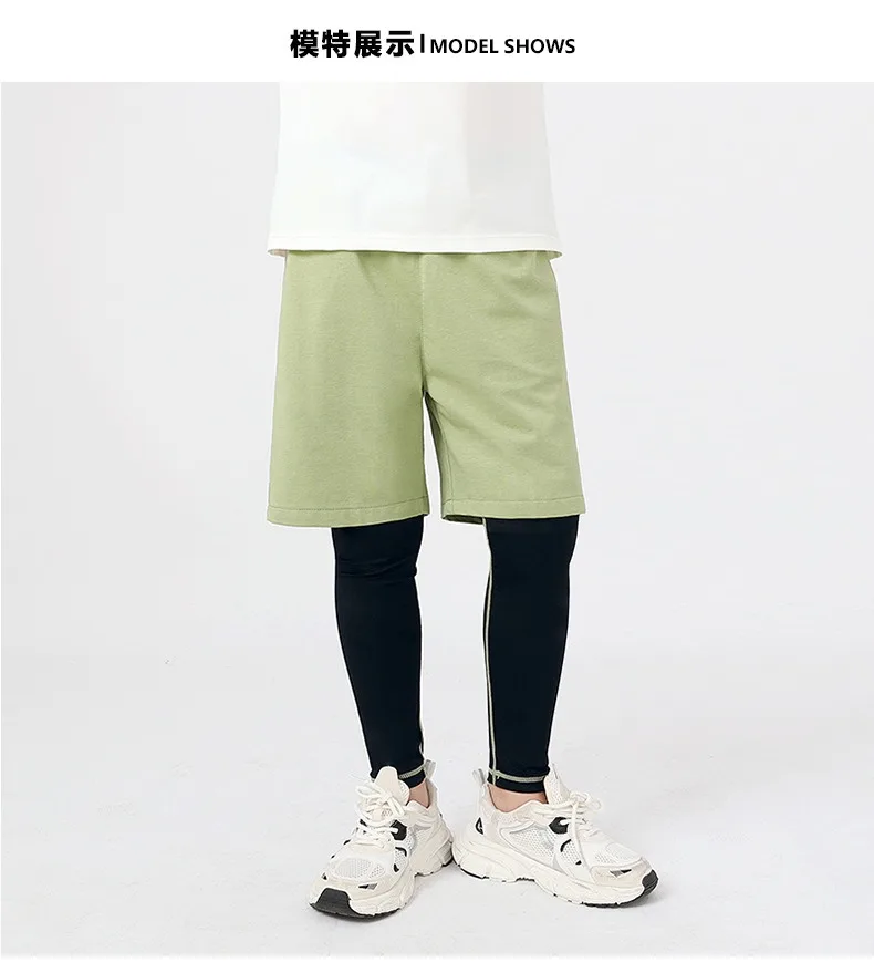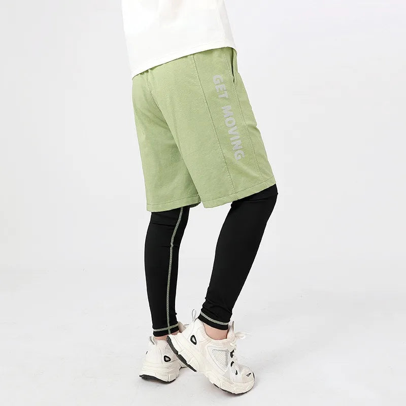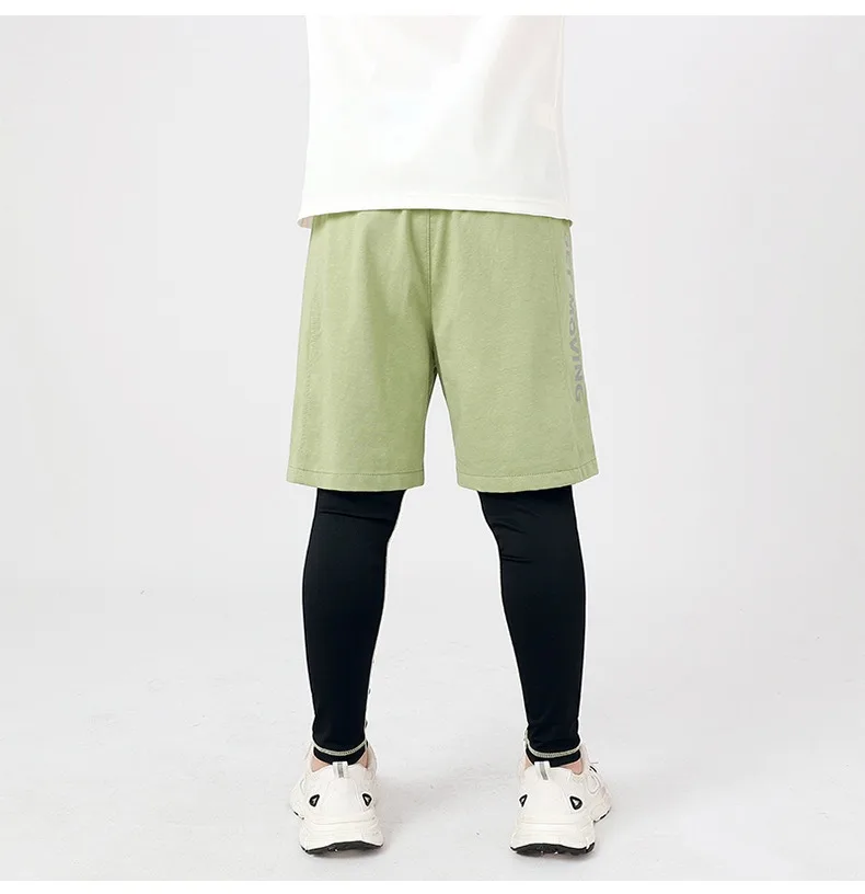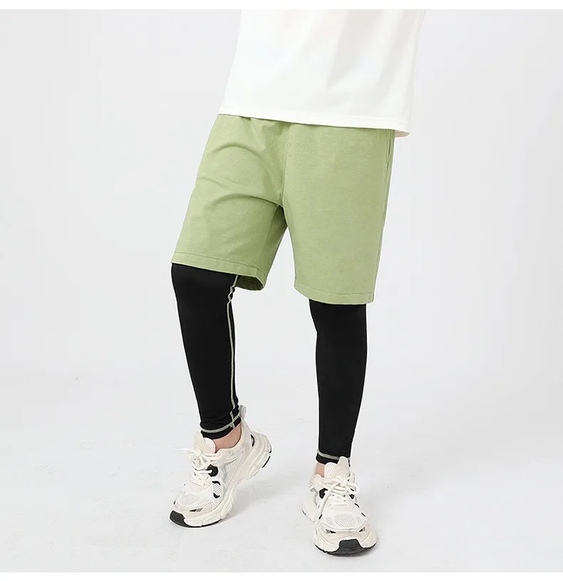 Boy's Basketball Shorts Leggings 2 in 1 Athletic Running Pants Quick-dry Fake Two Pieces Trousers Kids Trainning Tights Pants