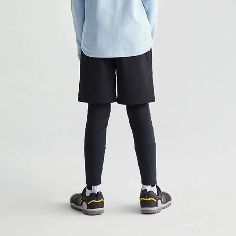 Boys Two-Layer Sports Pants Quick Dry Yoga Children Running Leggings European Style Workout Pants for Cycling/Hiking Basketball