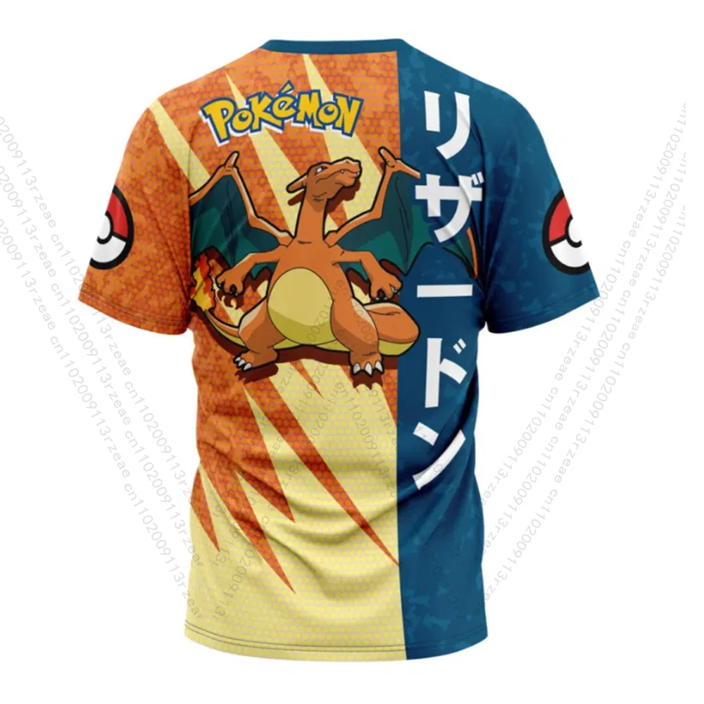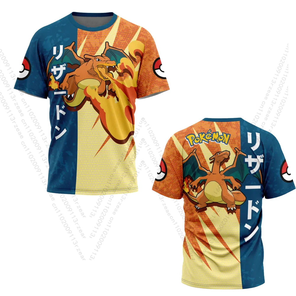 Charizard Pokemon Anime Men's Cosplay Set Print Gym T-shirt Pocket Monster Kawaii Breathable Shorts Quick Dry Sports Kids Suit