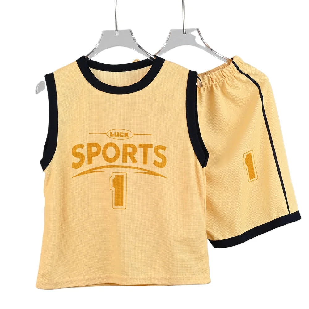 Boys and Girls Sports Vest Shorts Suit: Handsome Boys and Students Vest Suit 2-piece
