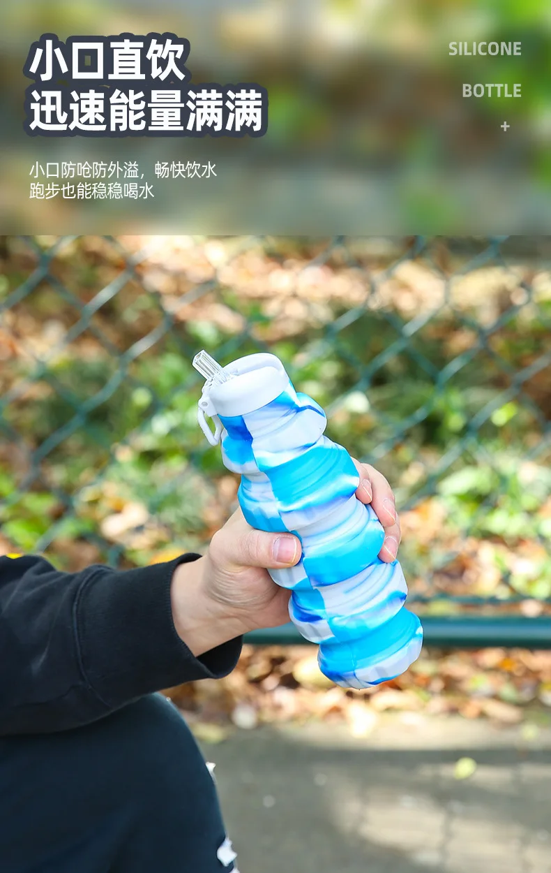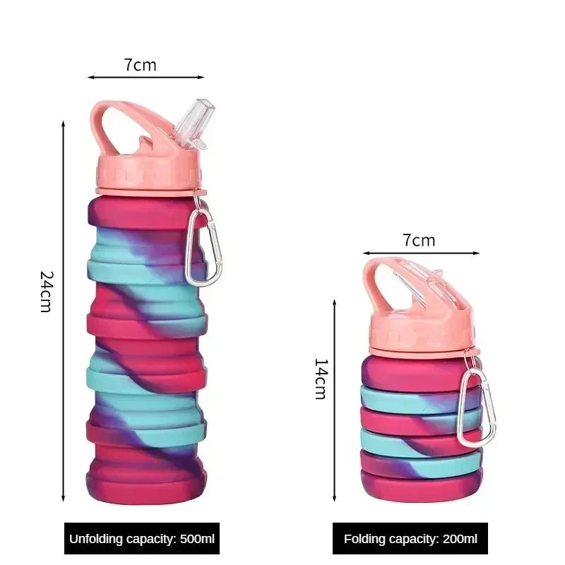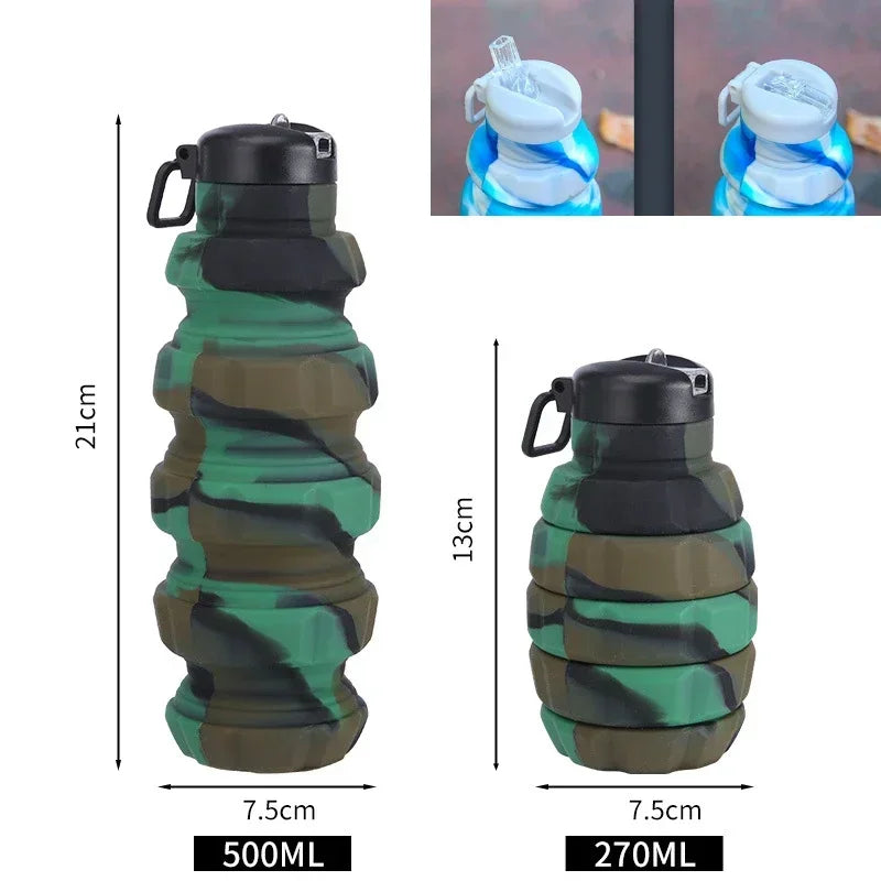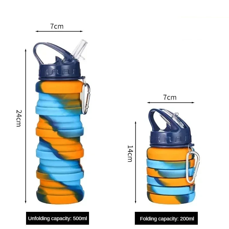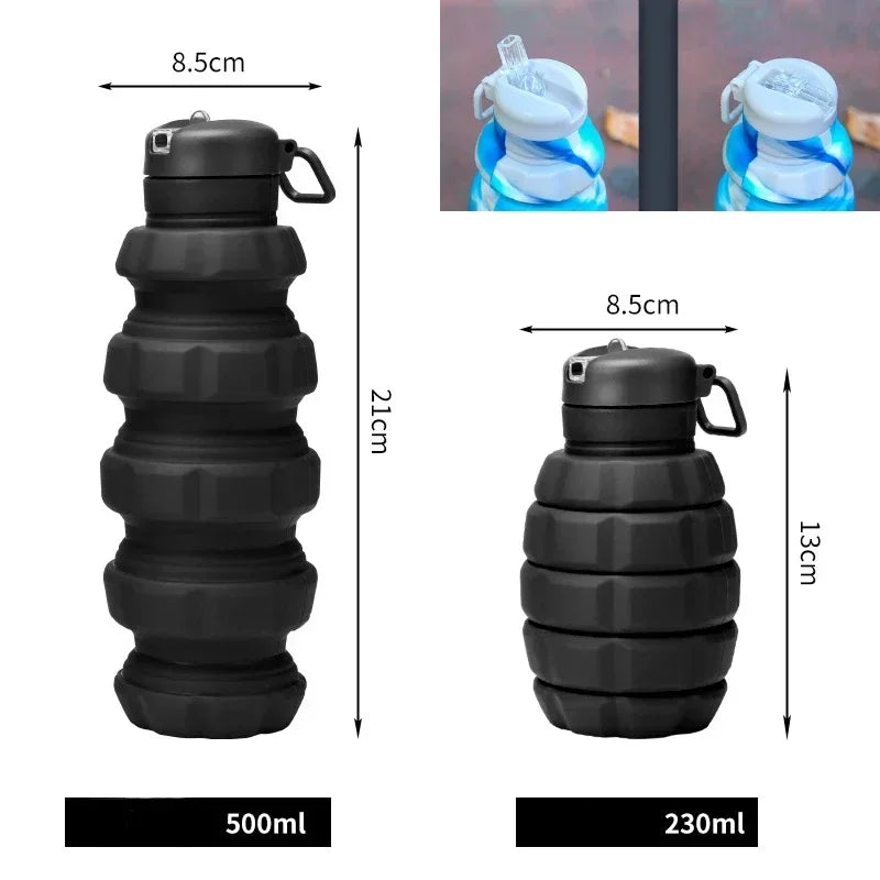Collapsible Water Bottle, Reuseable BPA Free Silicone Foldable Bottles Portable Hiking Cup for Outdoor Mountaineering Tours