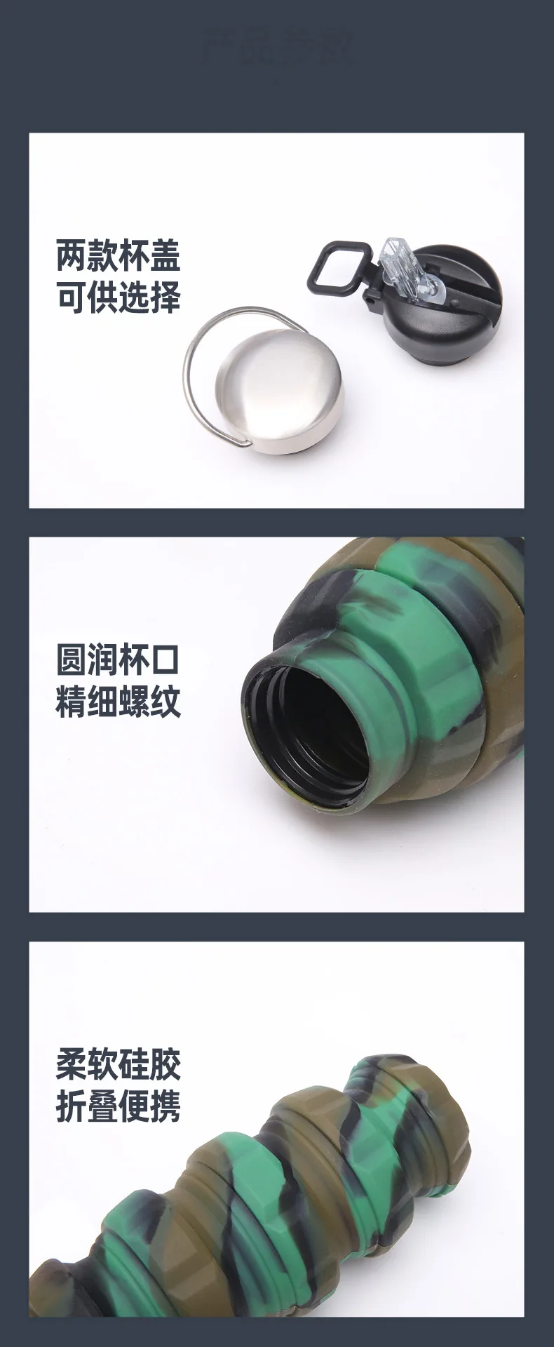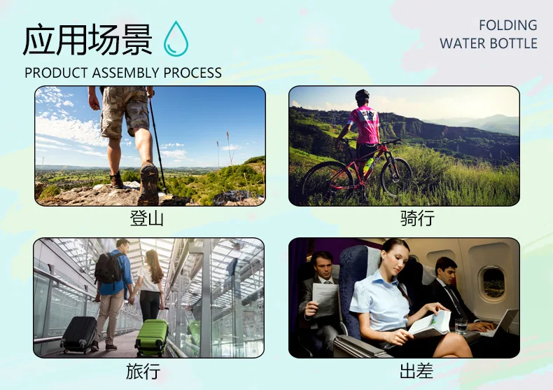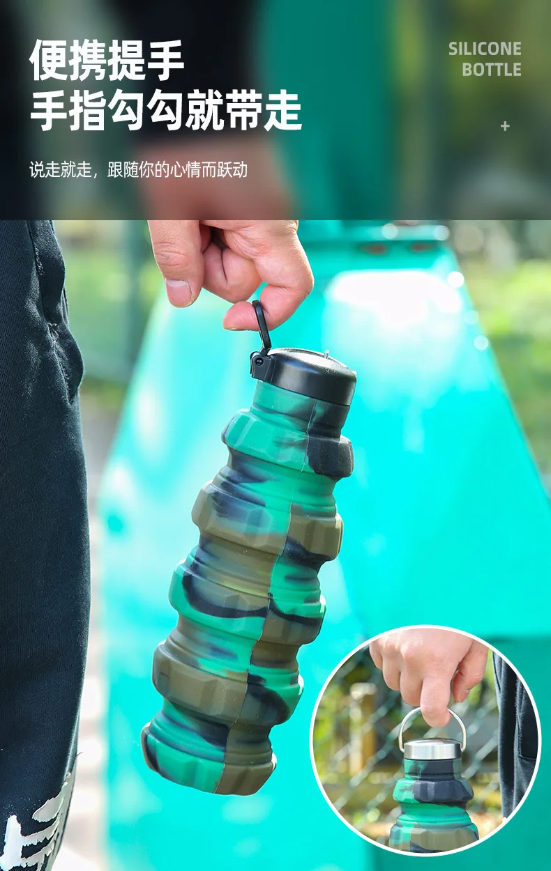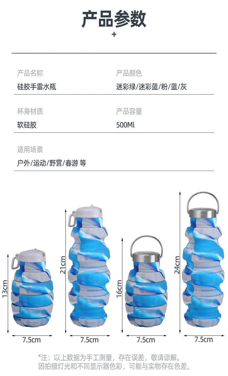 Collapsible Water Bottle, Reuseable BPA Free Silicone Foldable Bottles Portable Hiking Cup for Outdoor Mountaineering Tours