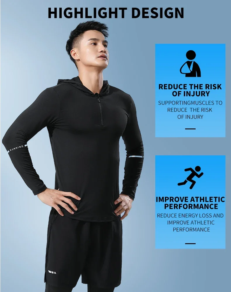 Compression Running Hoodies Men's Sports Suit Gym Fitness Sportswear Quick Dry Basketball Tights Outdoor Training Tracksuit 3306