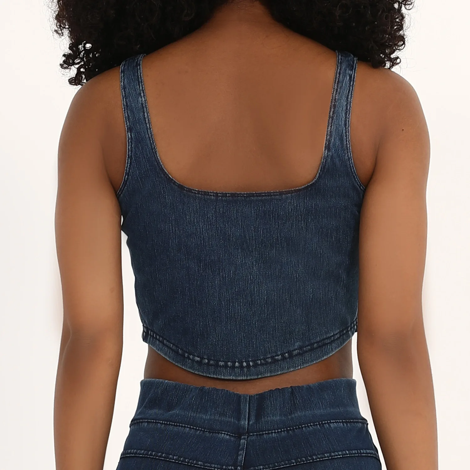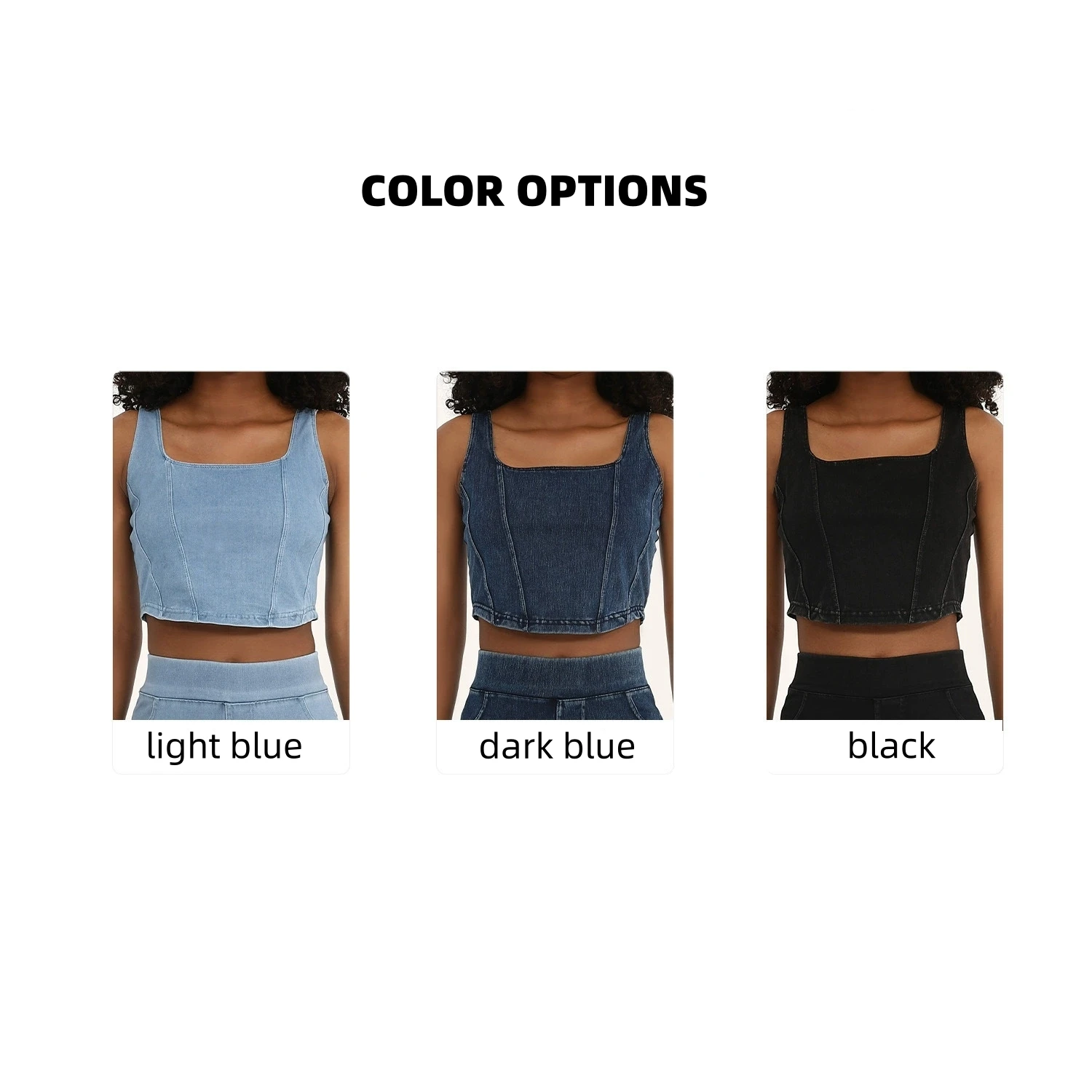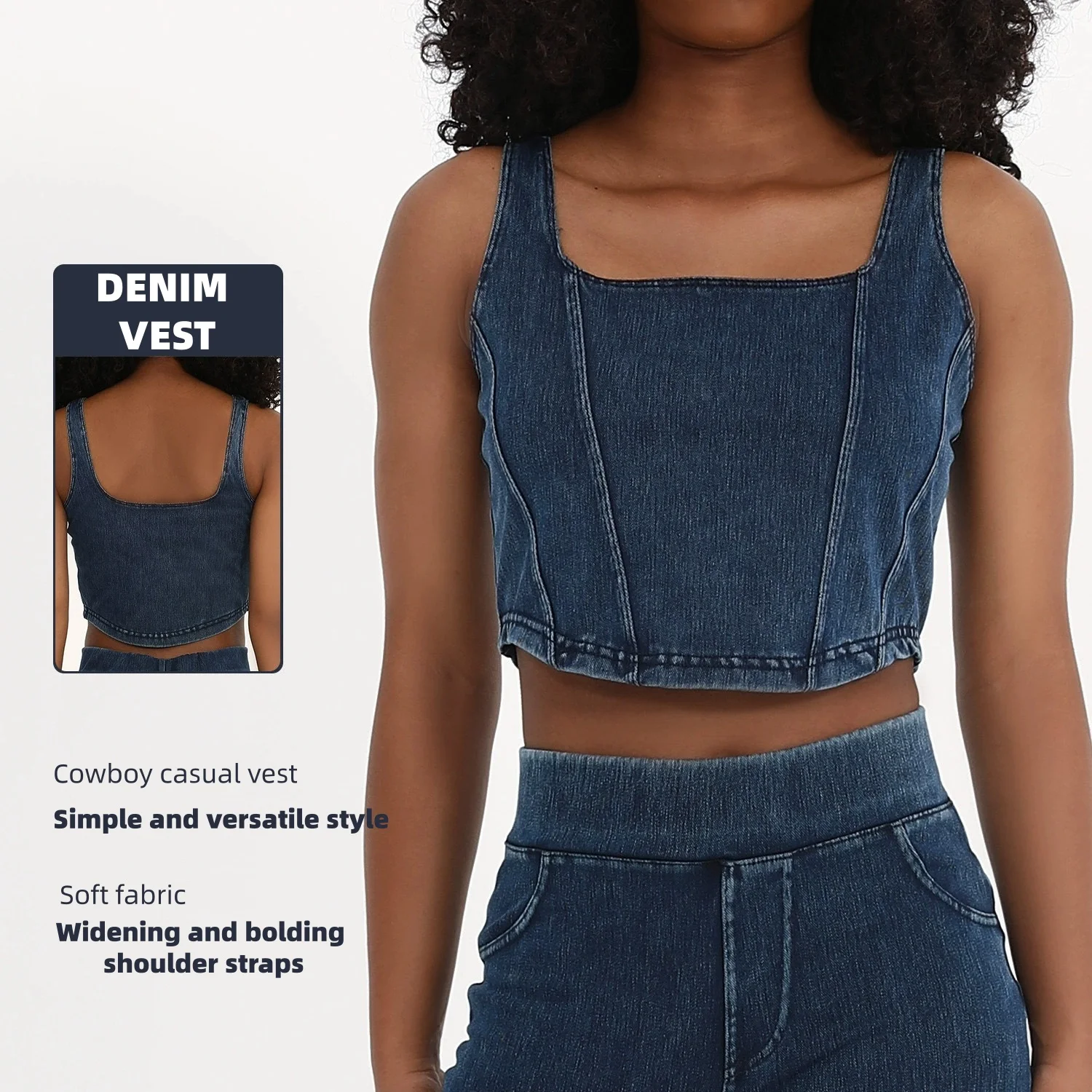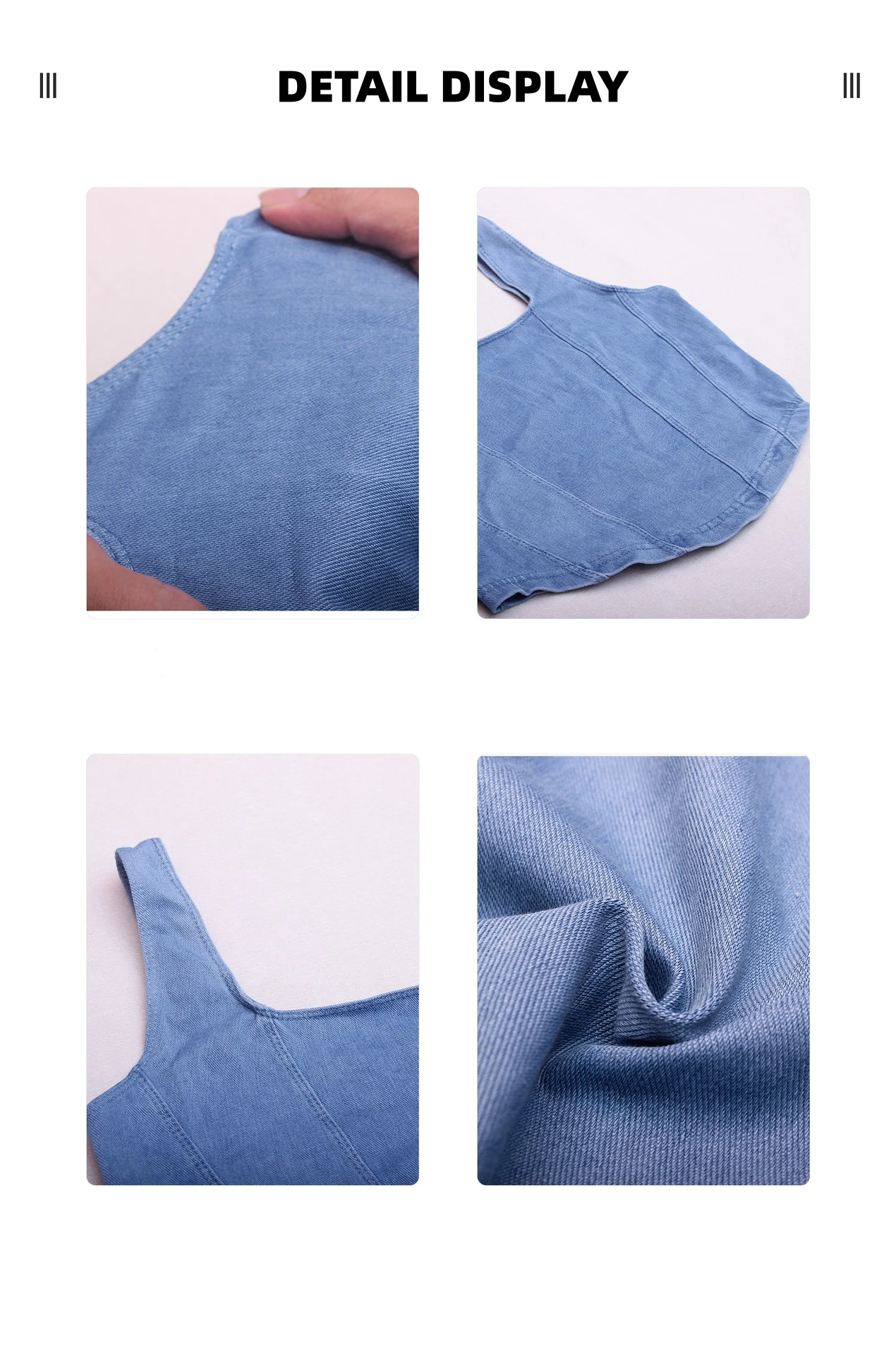 Cowboy Vest for Women Yoga Sport Top U-Shape Sleeveless Denim Workout Vest High Elastic Gym Wear Western Costume Outdoor Casual
